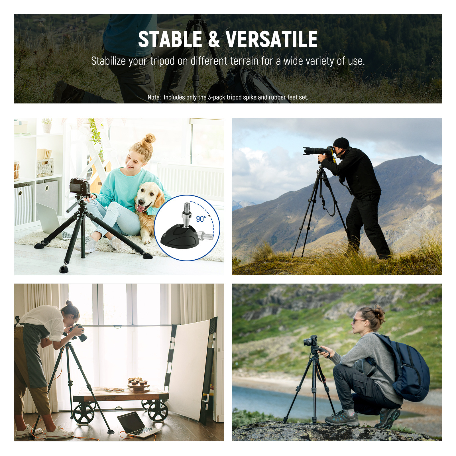 NEEWER Nuer 유니버설 미끄럼 방지 삼각대 발 3/8 "스테인레스 스틸 이동식 고무 발 패드 이동식 발스토어 가기
