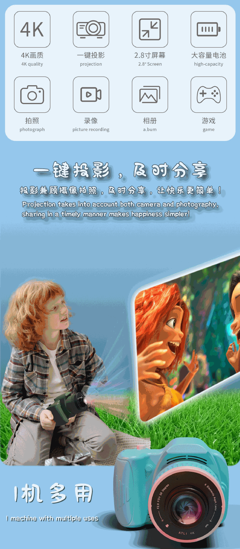 국경 간 어린이 작은 SLR 디지털 미니 카메라 학생 HD 만화 사진 비디오 프로젝션 카메라 장난감스토어 가기