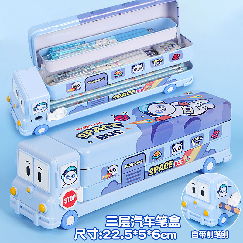 B662 초등학교 소년 소녀를위한 다기능 어린이 창조적 인 문구 상자 소년 학교 버스 3 층 연필 상자