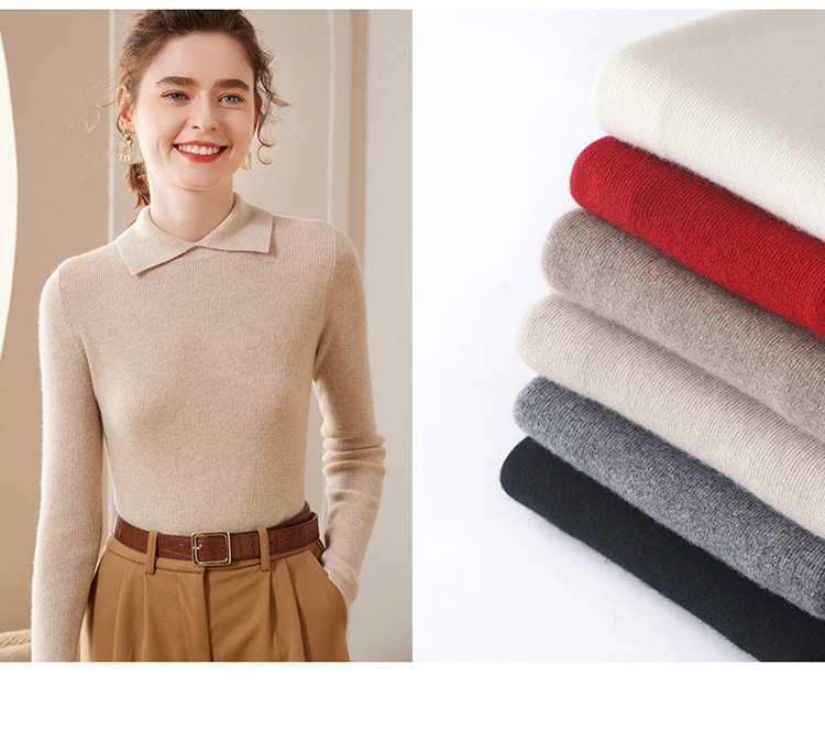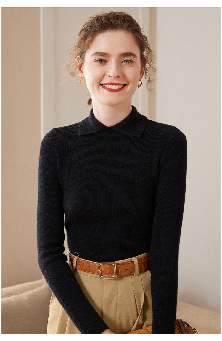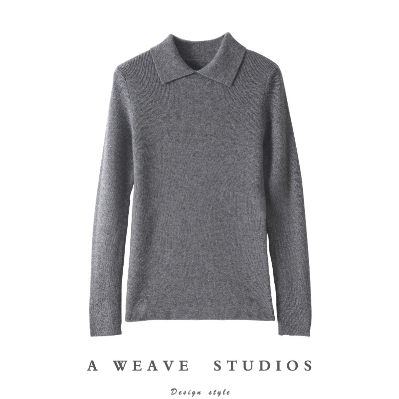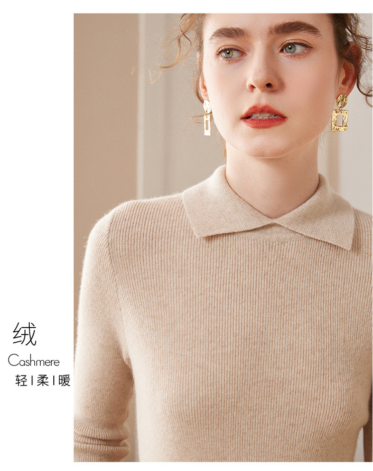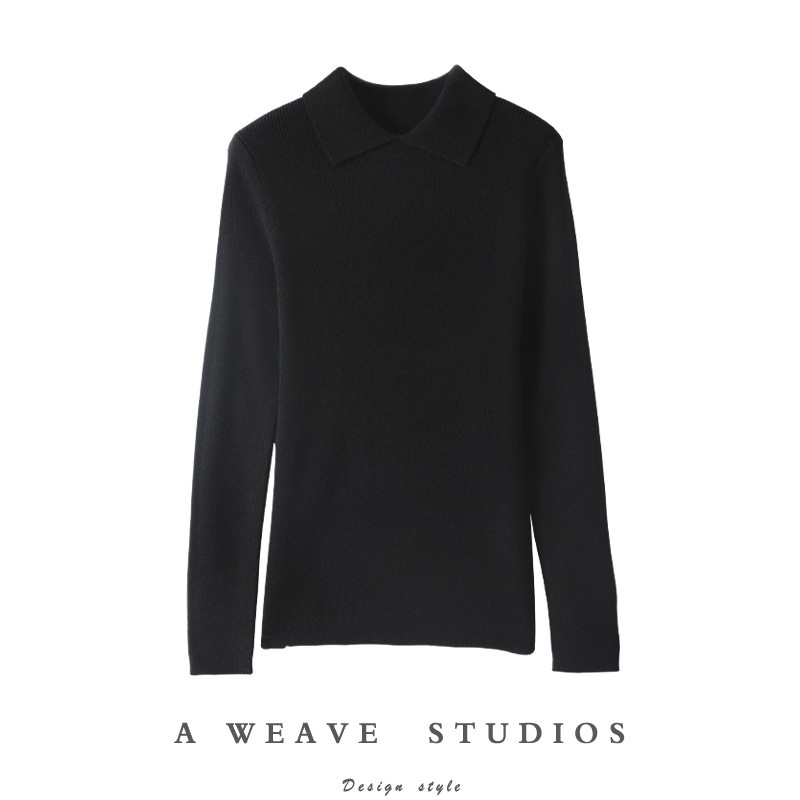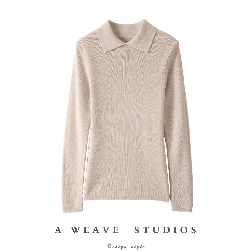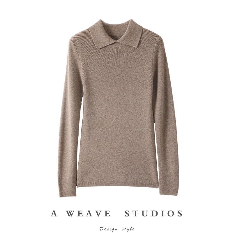 한국식 옷깃 심플 솔리드 컬러 드로우 스웨터 슬림핏 슬리밍 통근 가을과 겨울 새 캐시미어 니트 베이스 셔츠