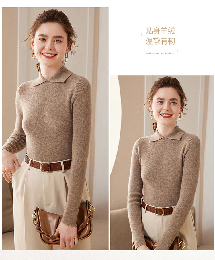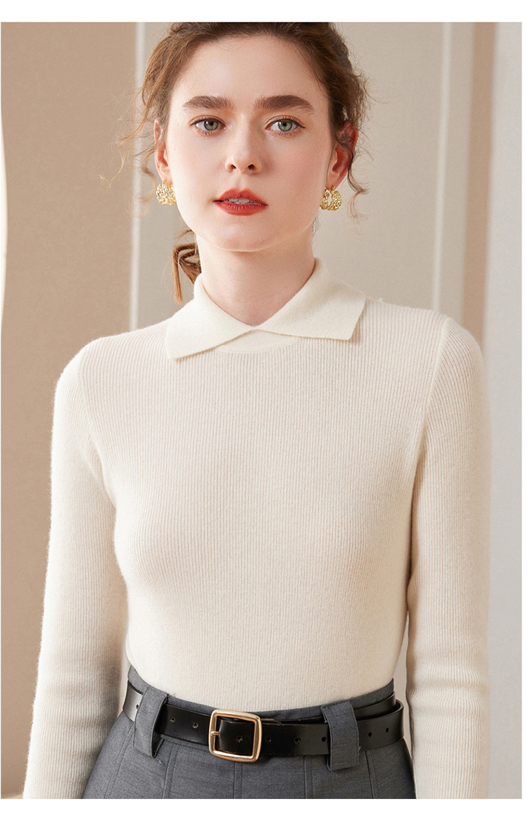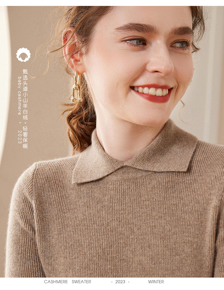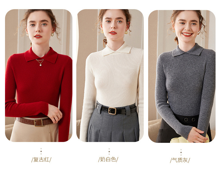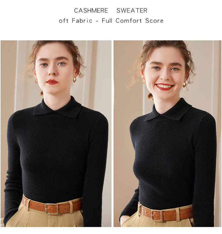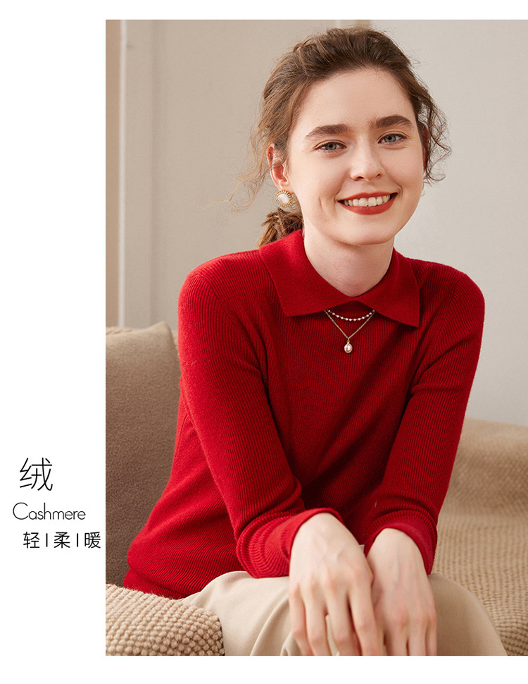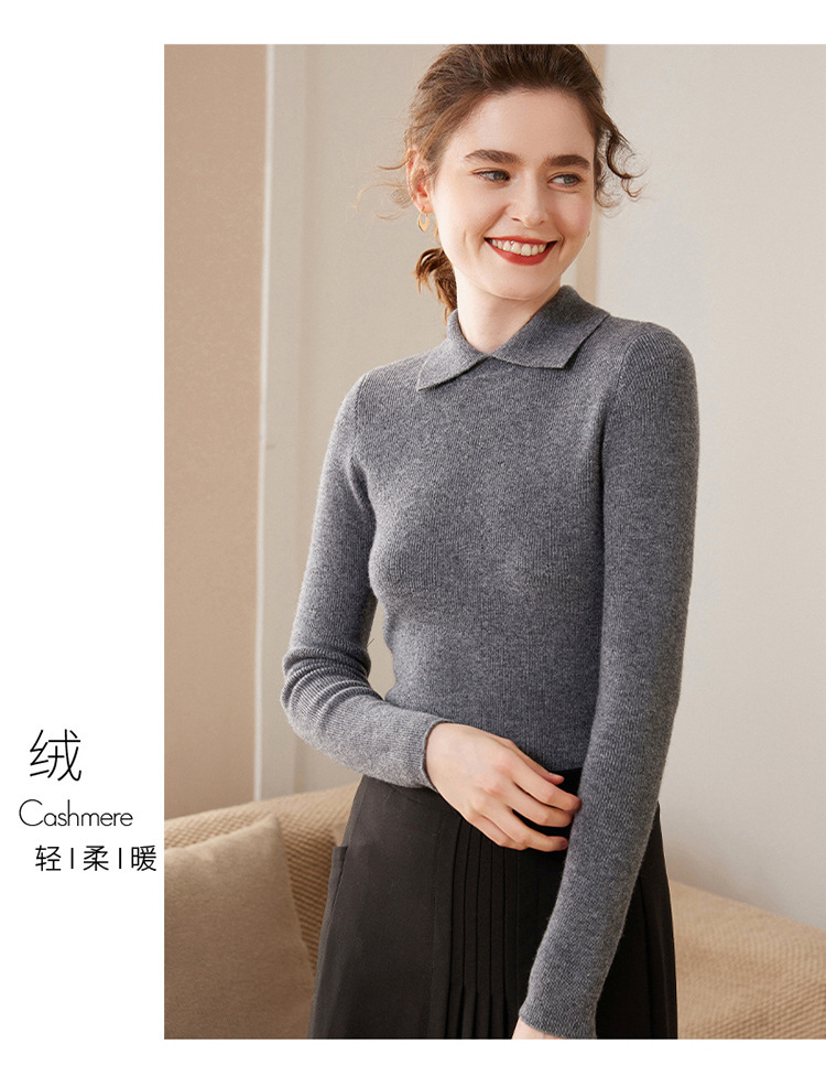 한국식 옷깃 심플 솔리드 컬러 드로우 스웨터 슬림핏 슬리밍 통근 가을과 겨울 새 캐시미어 니트 베이스 셔츠