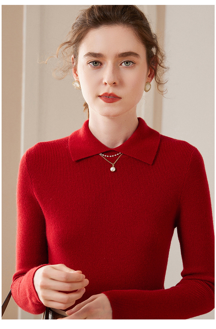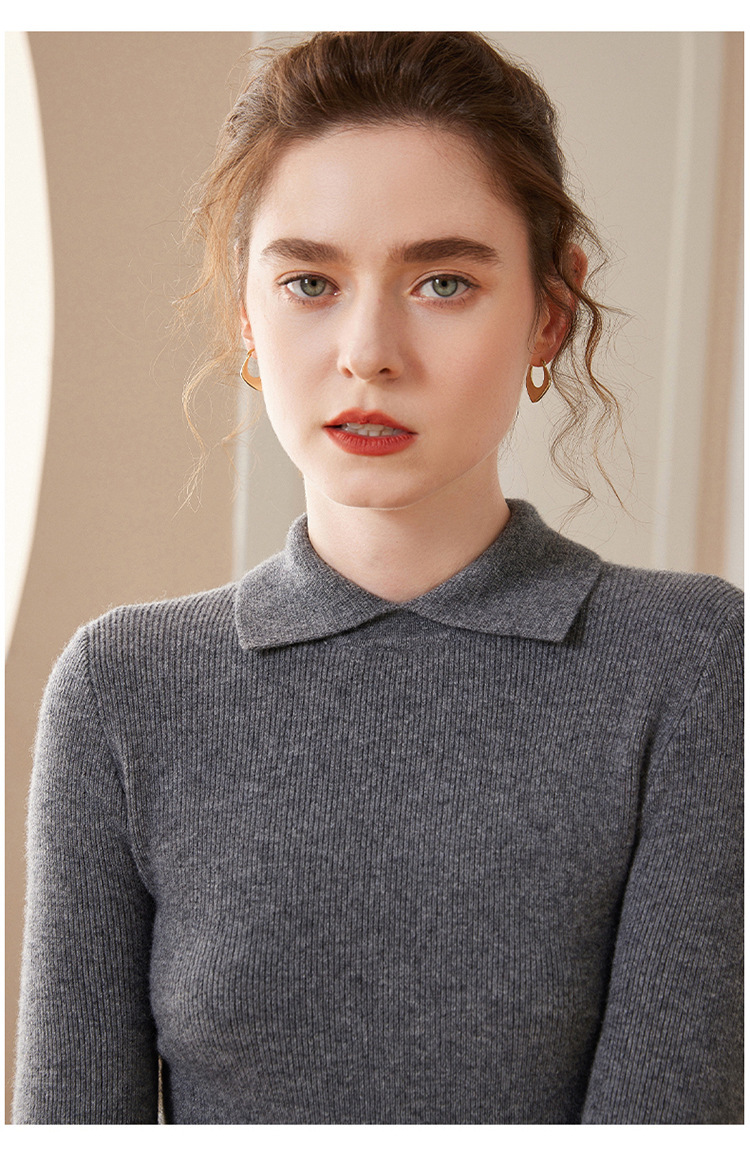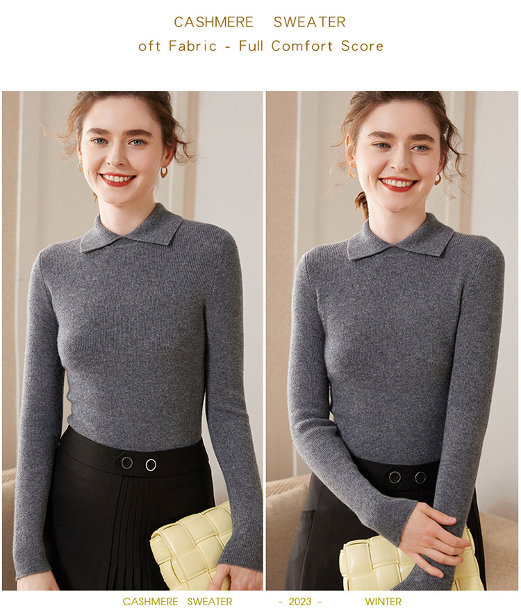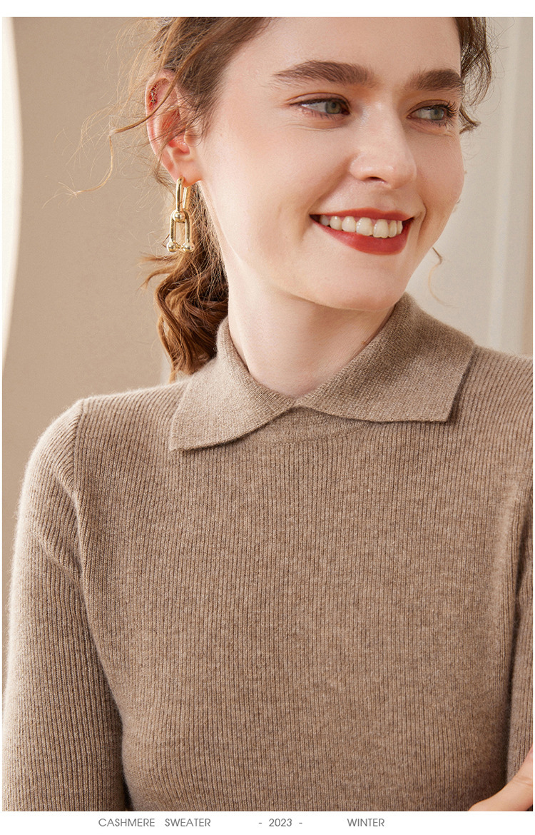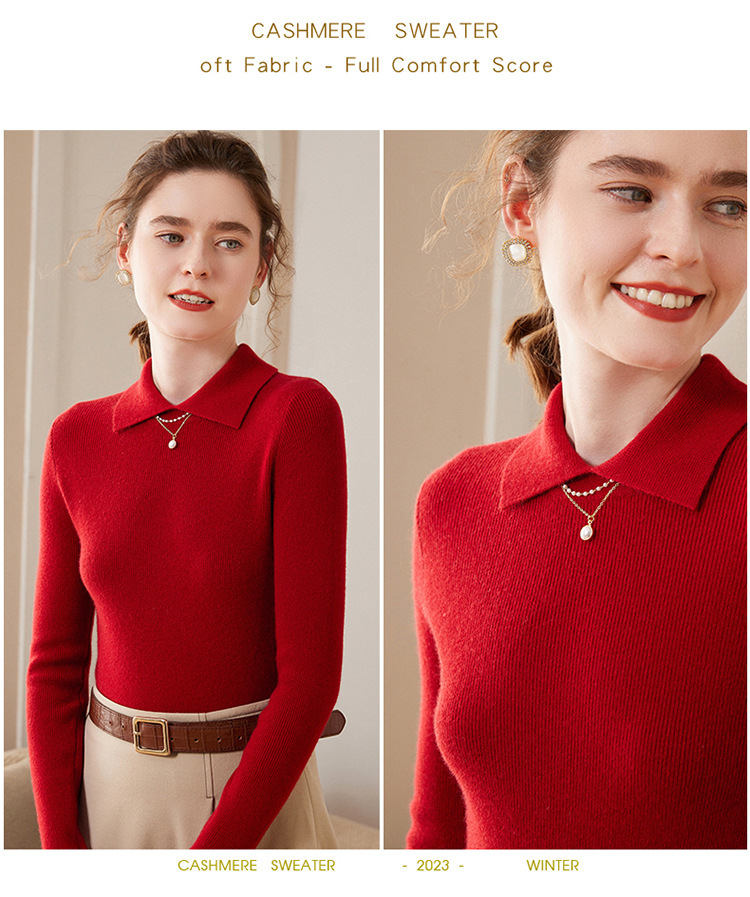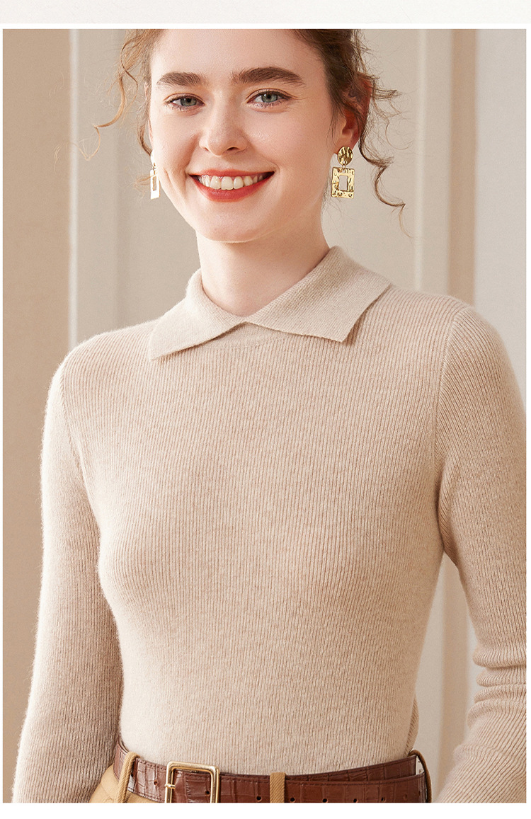 한국식 옷깃 심플 솔리드 컬러 드로우 스웨터 슬림핏 슬리밍 통근 가을과 겨울 새 캐시미어 니트 베이스 셔츠