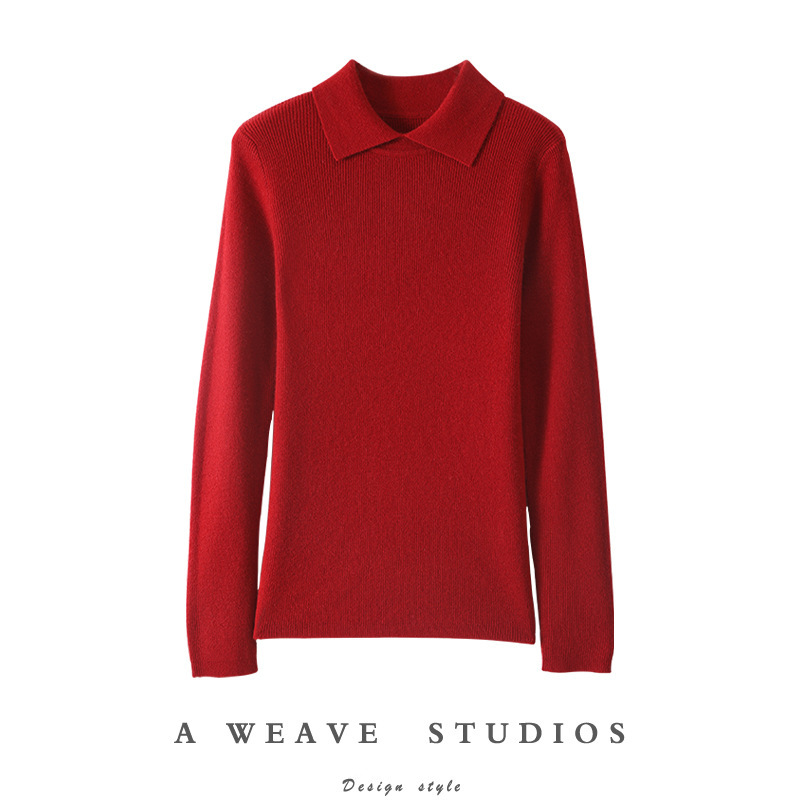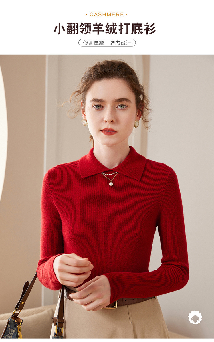 한국식 옷깃 심플 솔리드 컬러 드로우 스웨터 슬림핏 슬리밍 통근 가을과 겨울 새 캐시미어 니트 베이스 셔츠스토어 가기