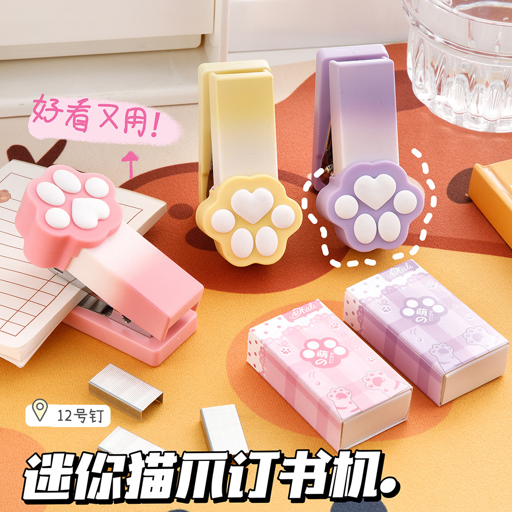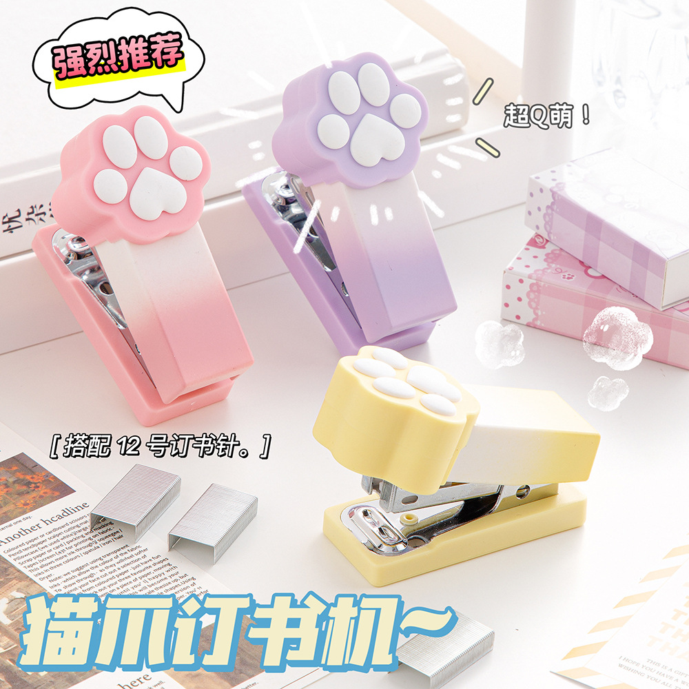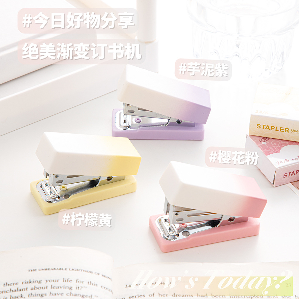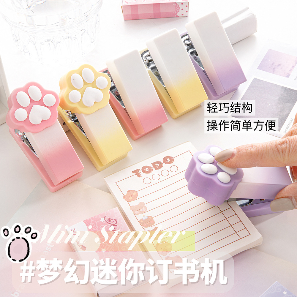 그라디언트 마카롱 컬러 미니 고양이 발톱 노동 절약 스테이플러 학생 사무실 휴대용 바인딩 용품 스테이플러스토어 가기