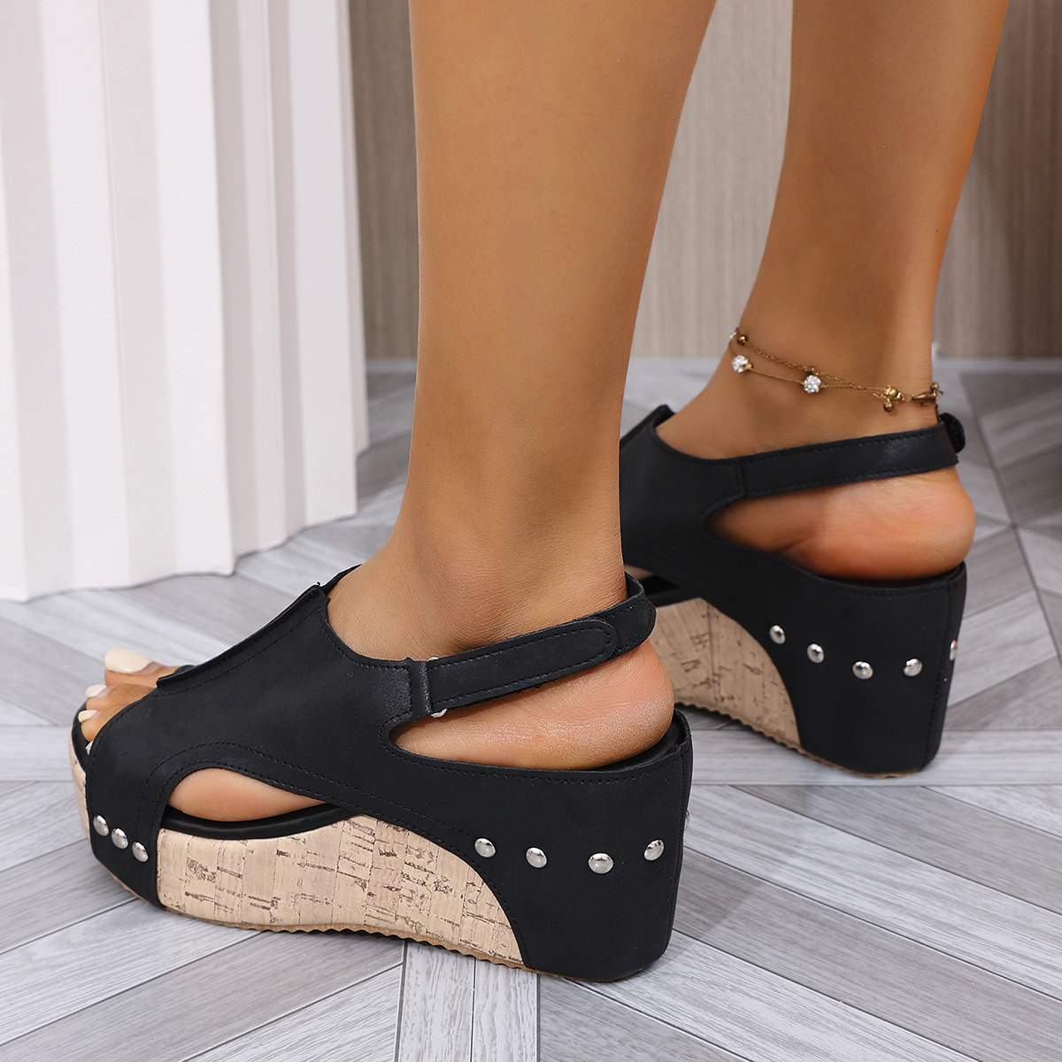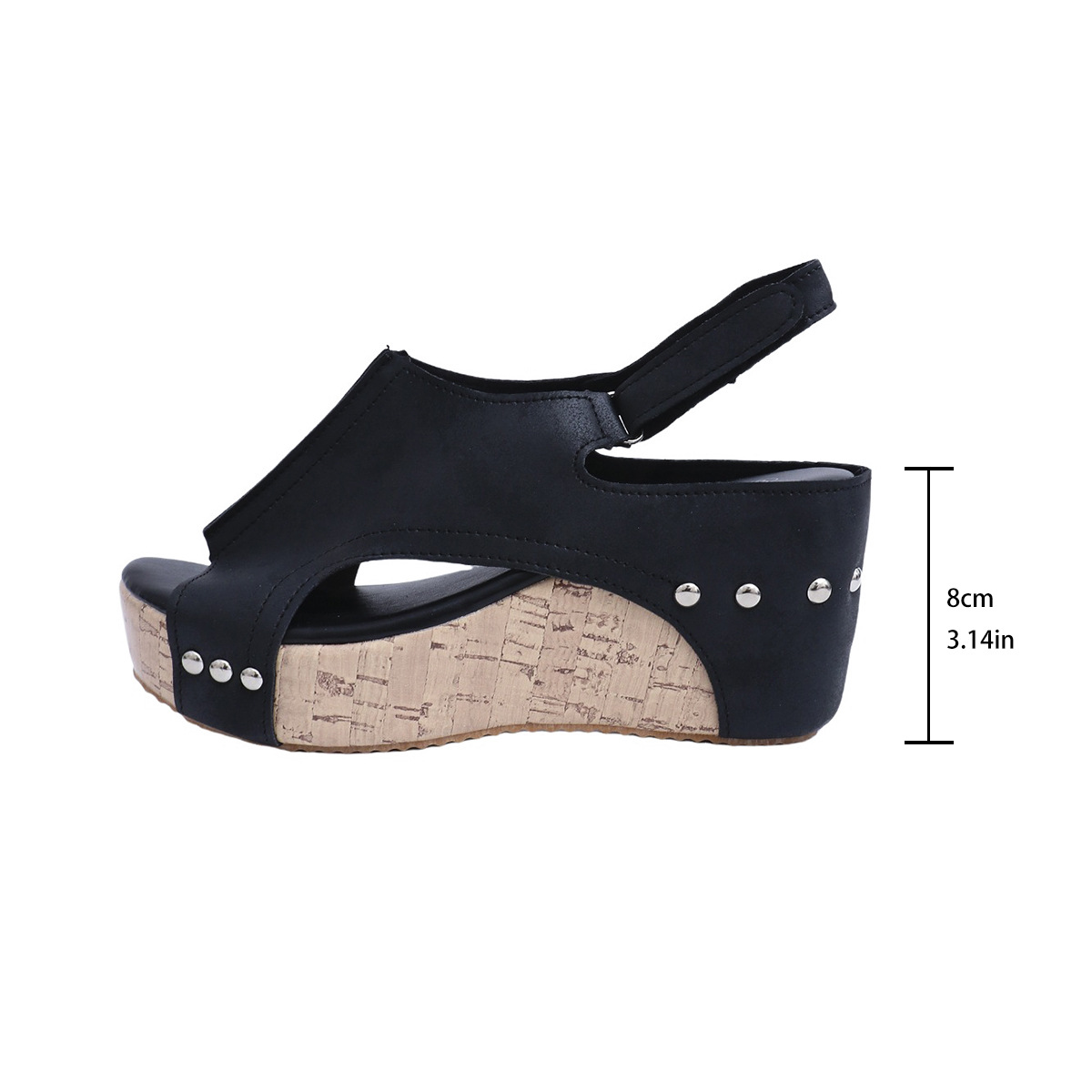 대외 무역 여름 새로운 리벳 쐐기 물고기 발가락 샌들 여성 유럽과 미국 플러스 사이즈 방수 플랫폼 중공 하이힐 여성용 샌들 43스토어 가기