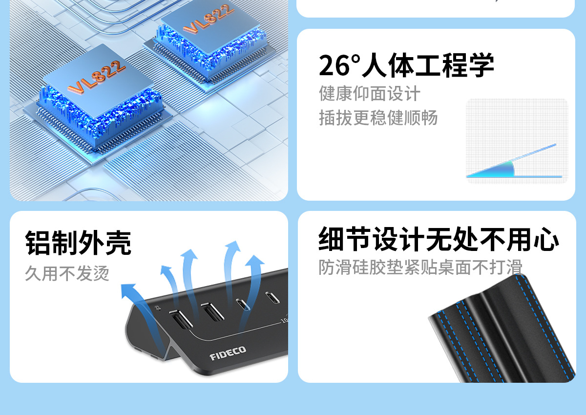 FIDECO 확장기 usb A typeC 멀티 인터페이스 확장 도크 전원 공급 장치 4/7 노트북 세트 스플리터