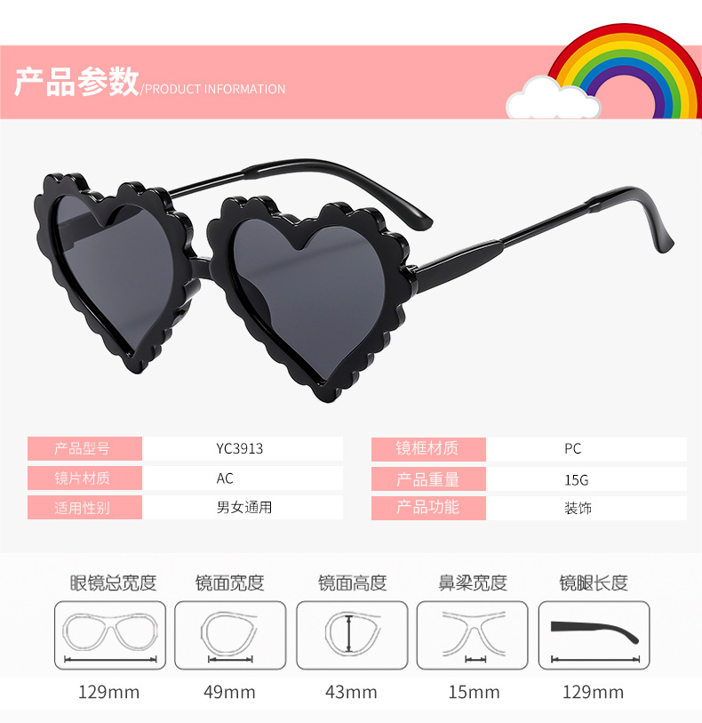 귀여운 아기 만화 안경 심장 모양의 패션 안티 UV 선글라스 소년과 소녀 맞춤형 어린이 사랑 선글라스