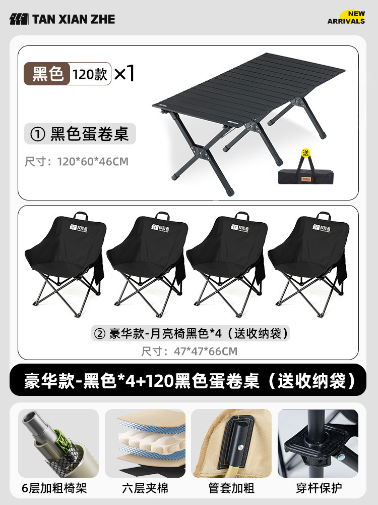 • 럭셔리 모델-블랙*4+120 블랙 에그롤 테이블(수납 가방 포함)