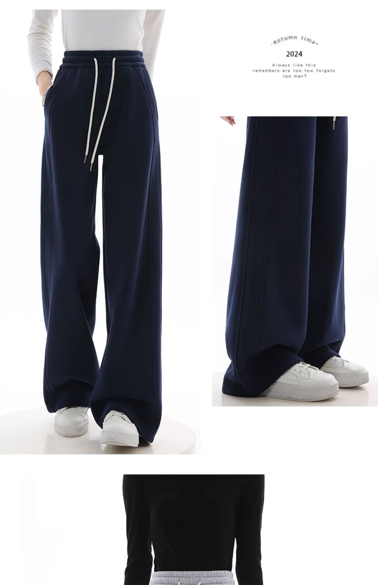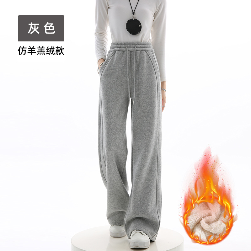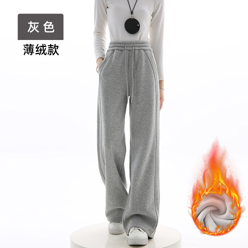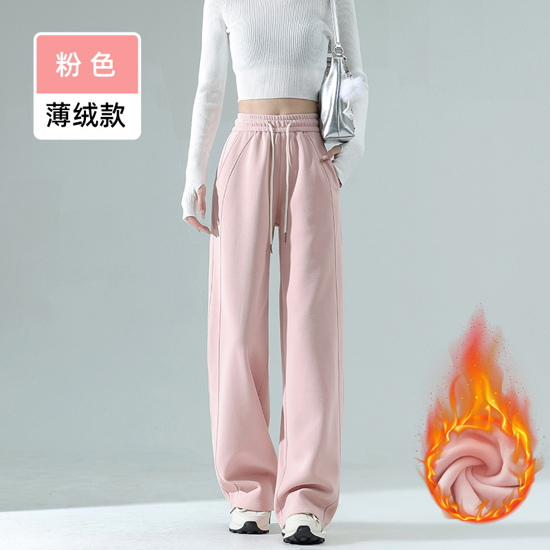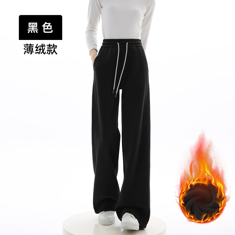 룰루와 같은 스타일의 여성용 와이드 팬츠, 가을 겨울용 캐주얼 기모 스트레이트 팬츠, 드레이프감 있는 하이웨이스트 스포츠 팬츠, 2025년 신상품스토어 가기