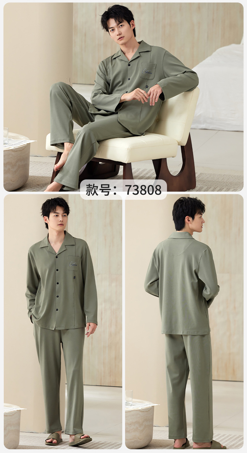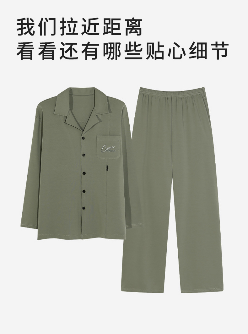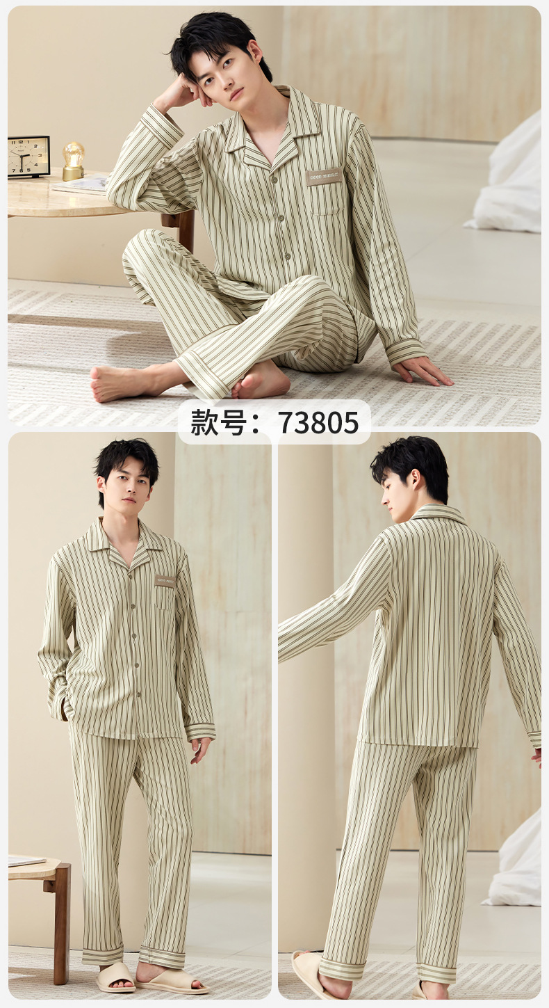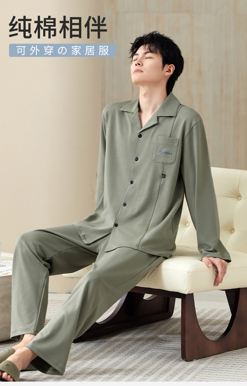 봄 · 가을 잠옷 남성면 긴소매 옷깃 홈 옷 느슨한 플러스 사이즈 한국 캐주얼 청소년 세트스토어 가기