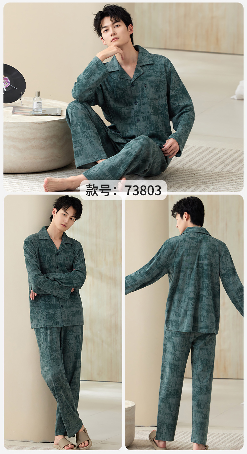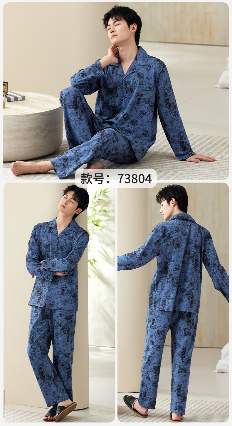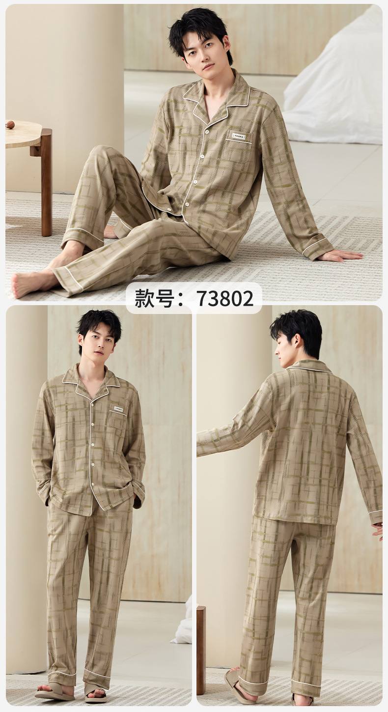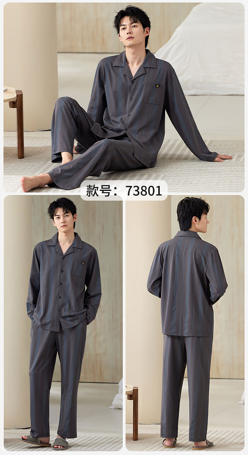 봄 · 가을 잠옷 남성면 긴소매 옷깃 홈 옷 느슨한 플러스 사이즈 한국 캐주얼 청소년 세트스토어 가기