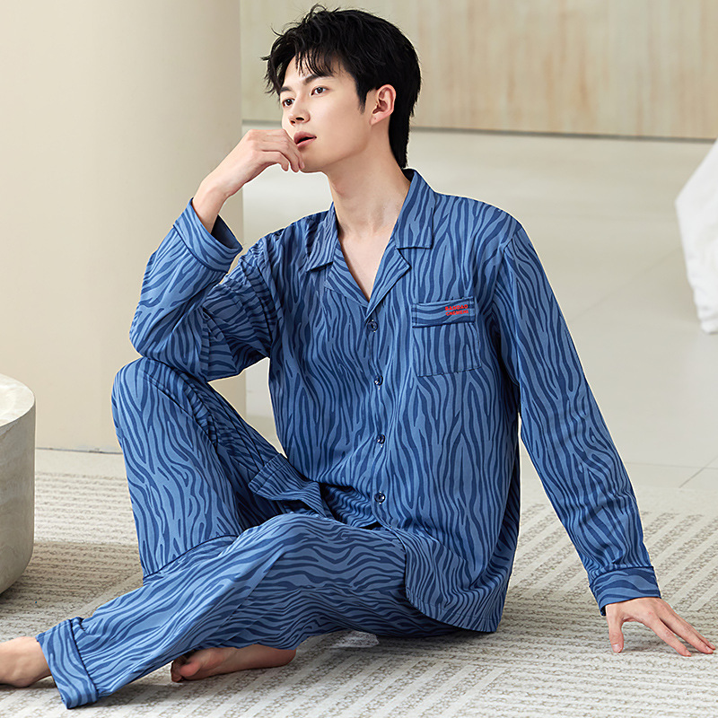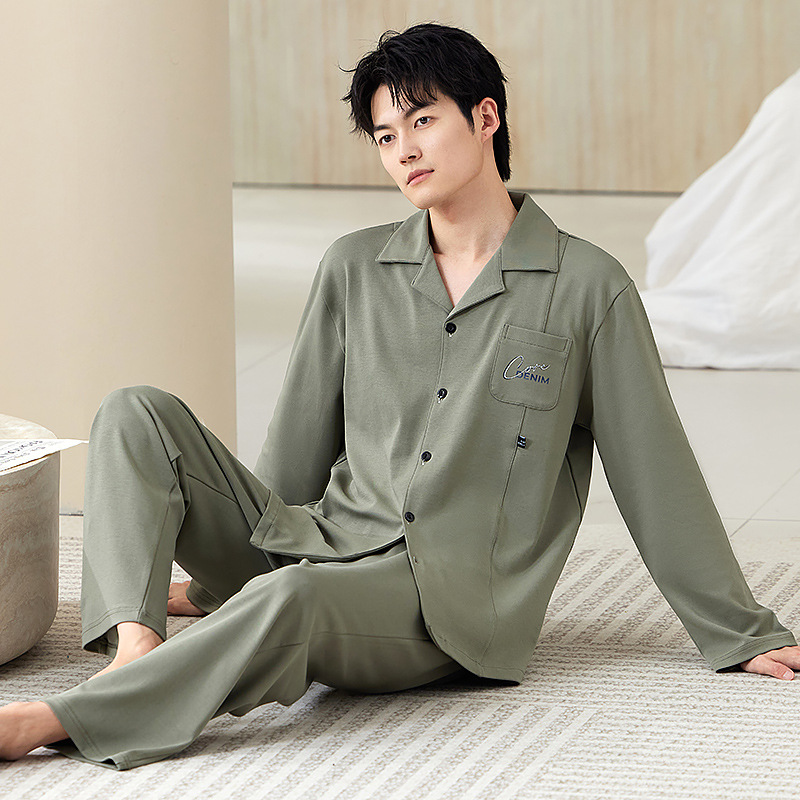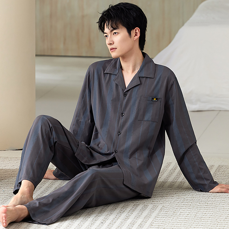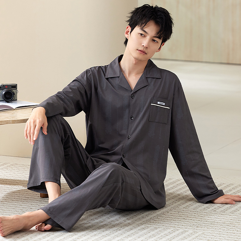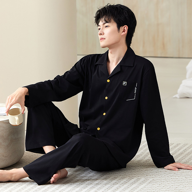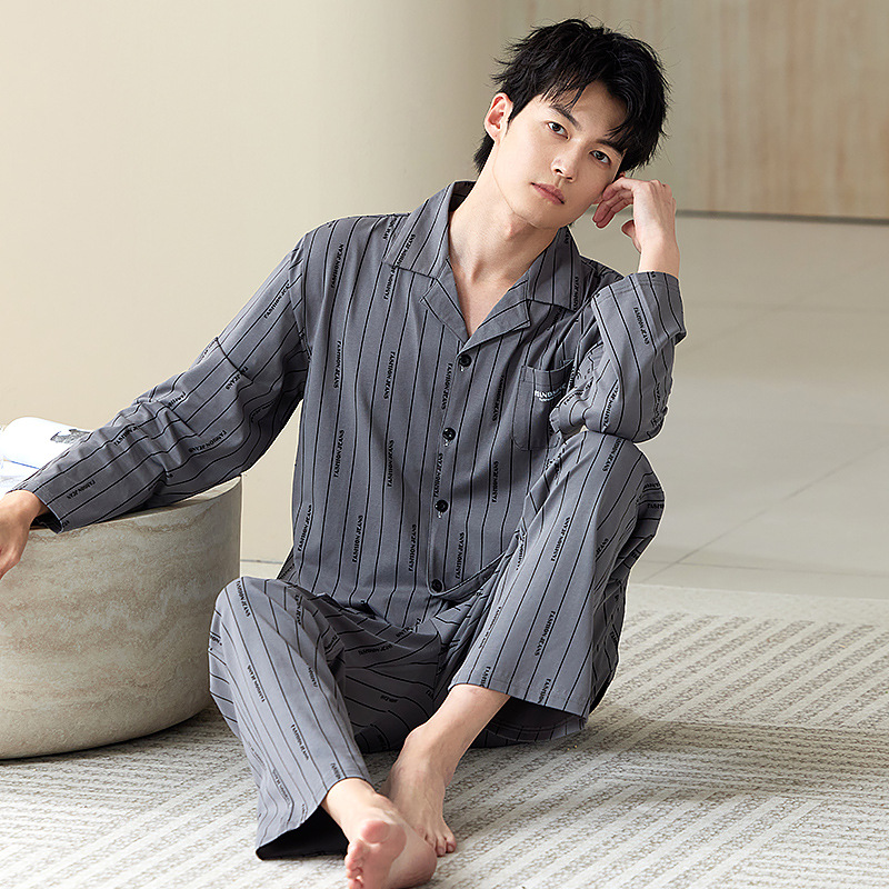 봄 · 가을 잠옷 남성면 긴소매 옷깃 홈 옷 느슨한 플러스 사이즈 한국 캐주얼 청소년 세트