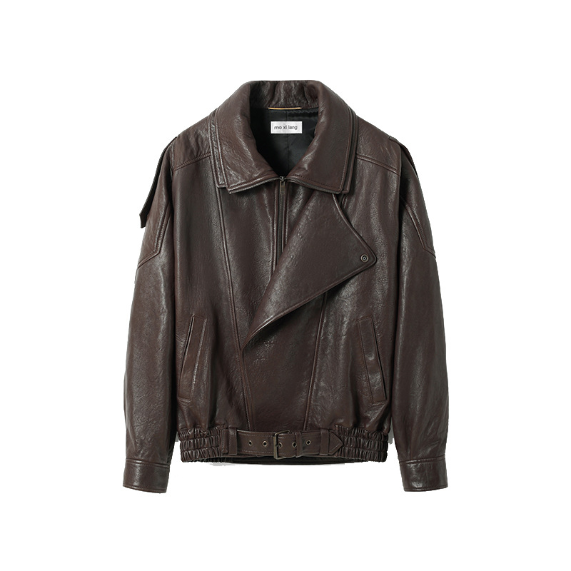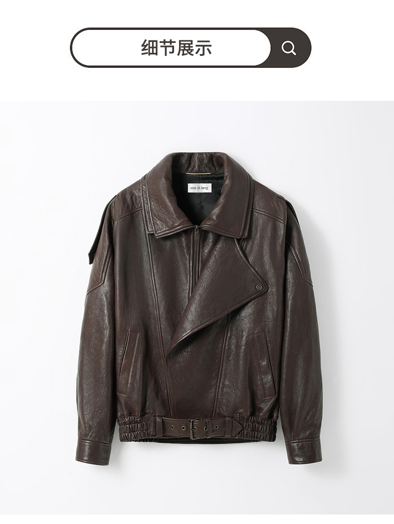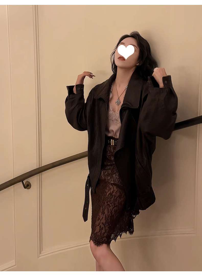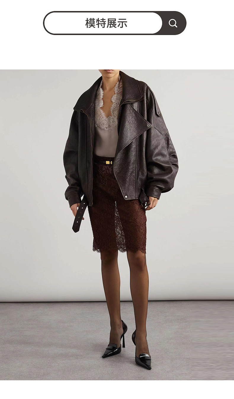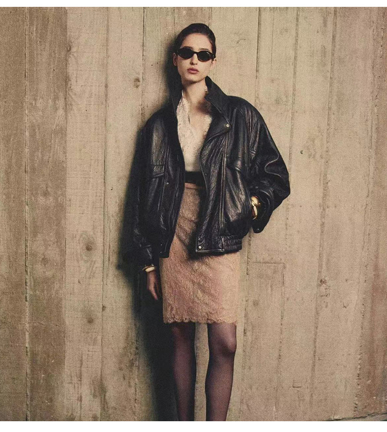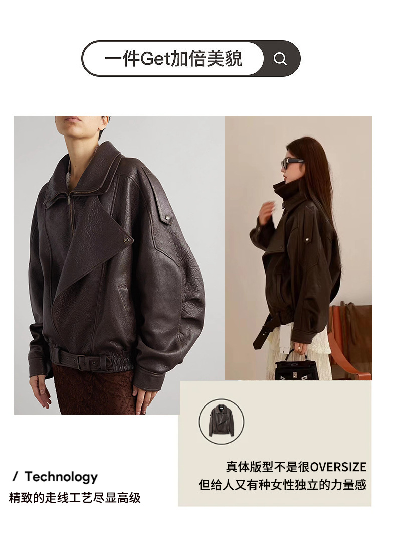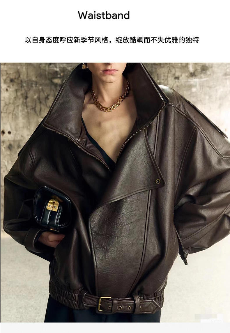 양 슐린 가을과 겨울 쇼 수입 버블 패턴 정품 가죽 여성 더블 칼라 짧은 오토바이 프로필 재킷 루즈 코트