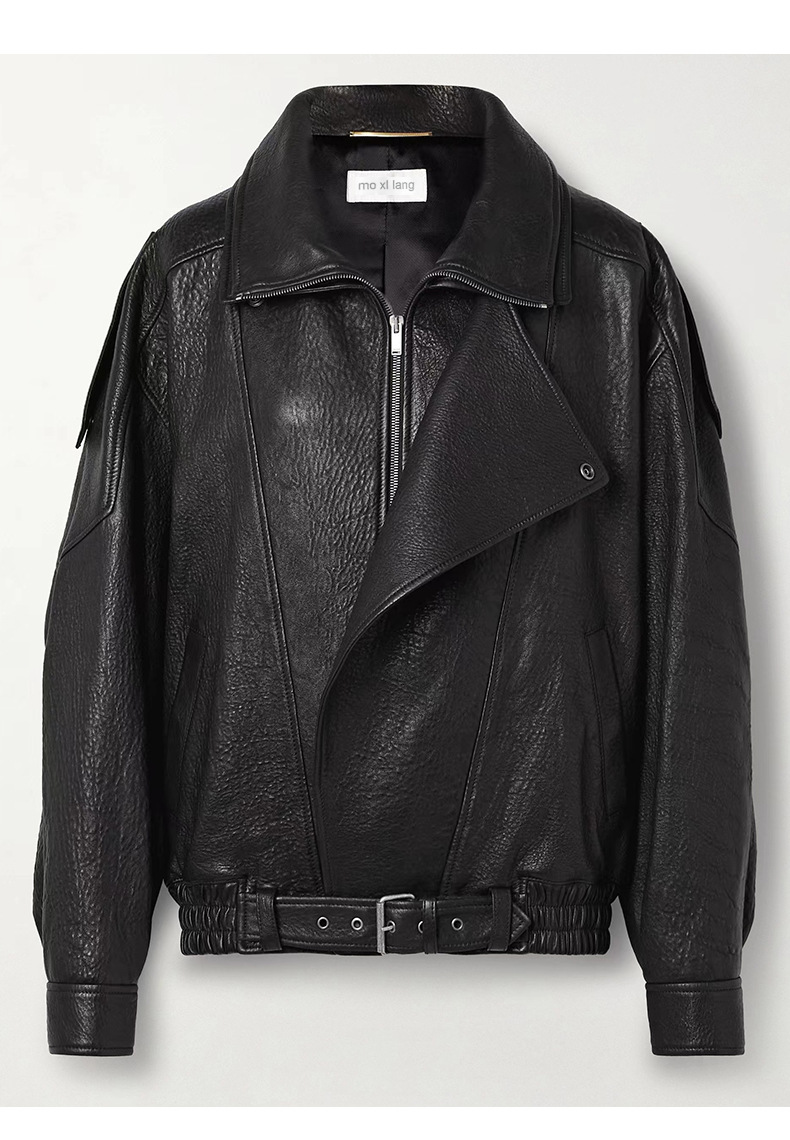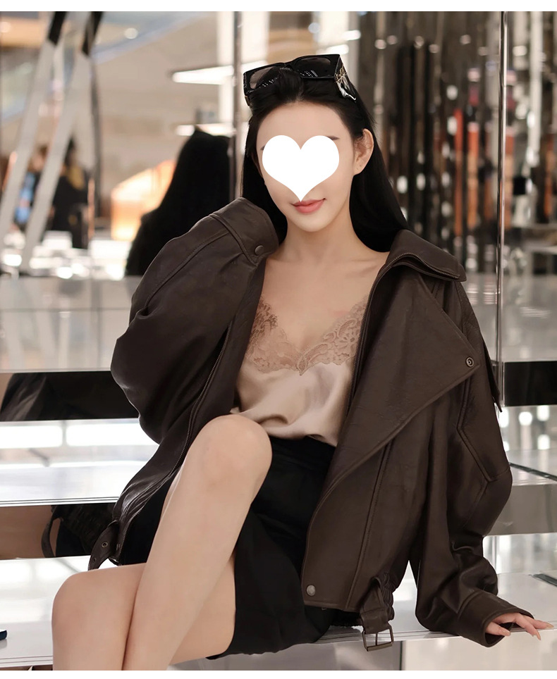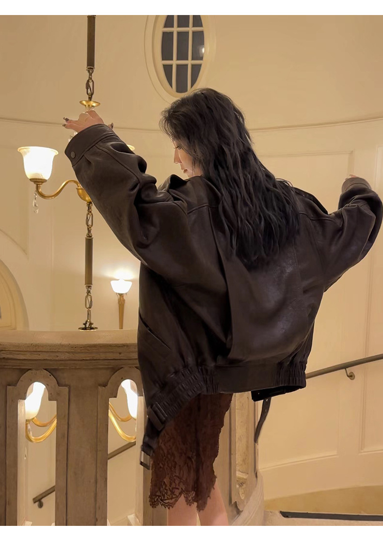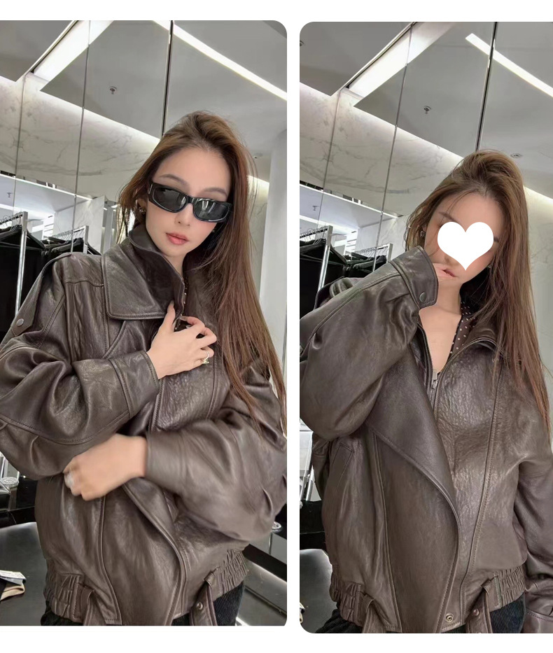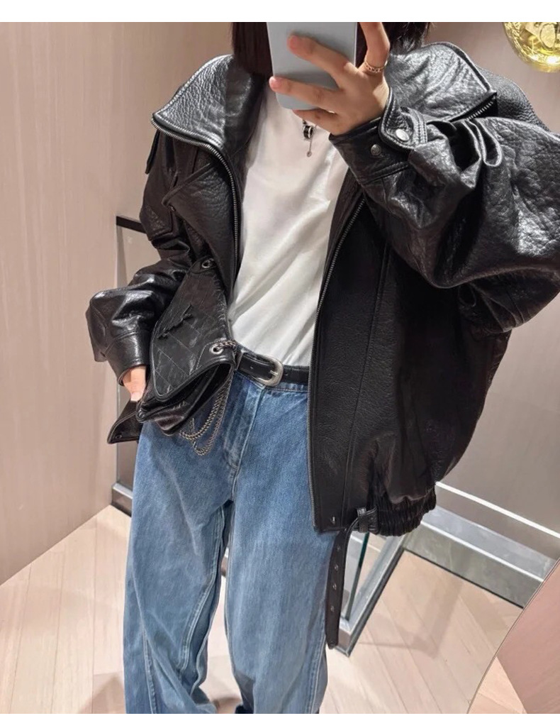 양 슐린 가을과 겨울 쇼 수입 버블 패턴 정품 가죽 여성 더블 칼라 짧은 오토바이 프로필 재킷 루즈 코트스토어 가기