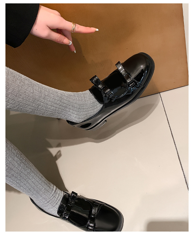 Cowhide 에디션 ~ 영국 스타일 활 작은 가죽 신발 여성 두꺼운 바닥 로퍼 가죽 블랙 로우 힐 신발스토어 가기