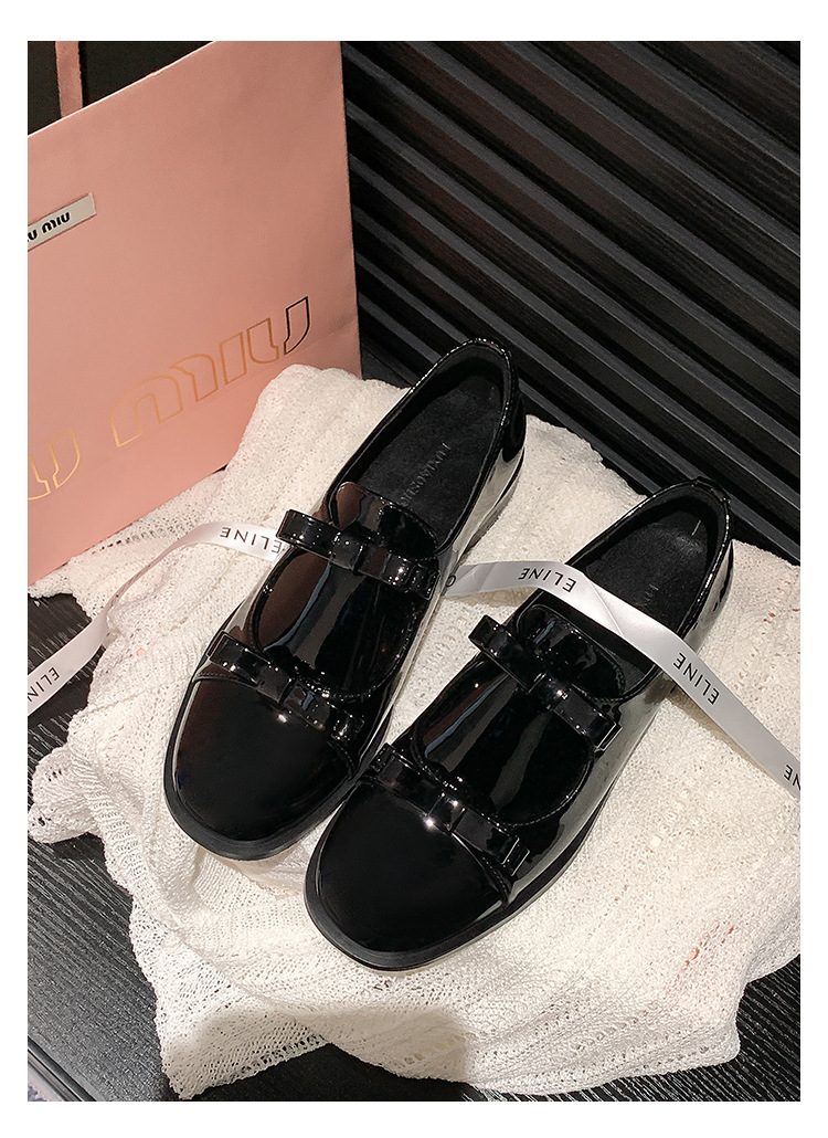 Cowhide 에디션 ~ 영국 스타일 활 작은 가죽 신발 여성 두꺼운 바닥 로퍼 가죽 블랙 로우 힐 신발