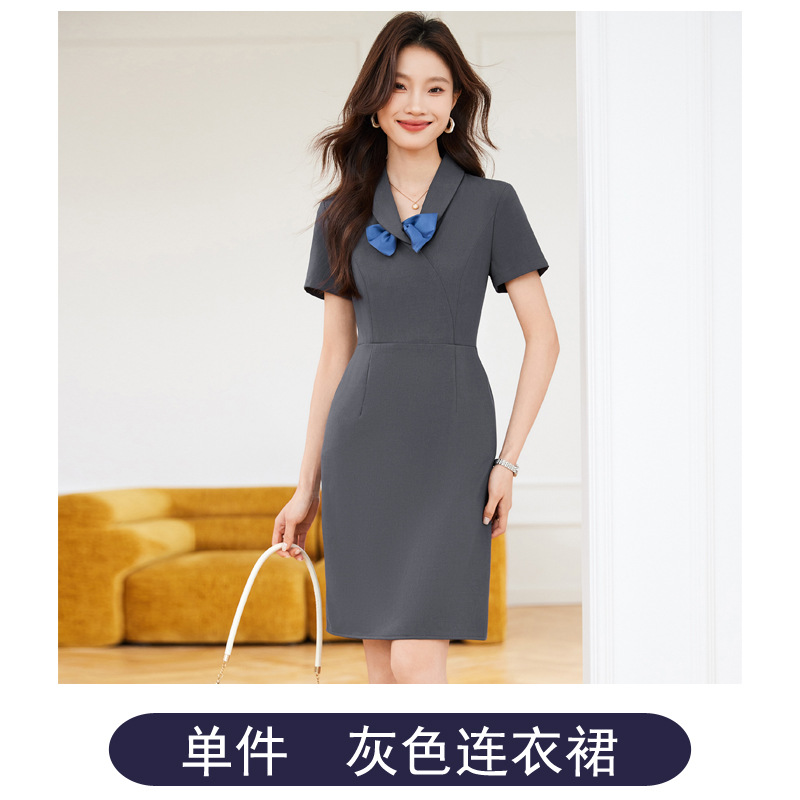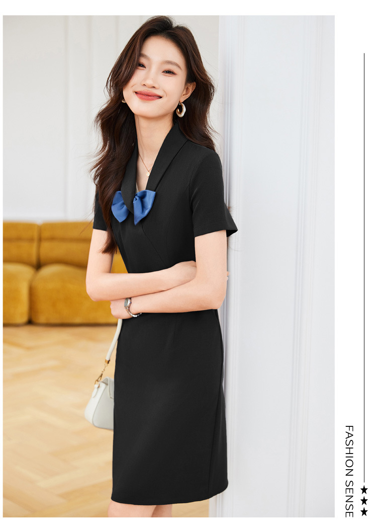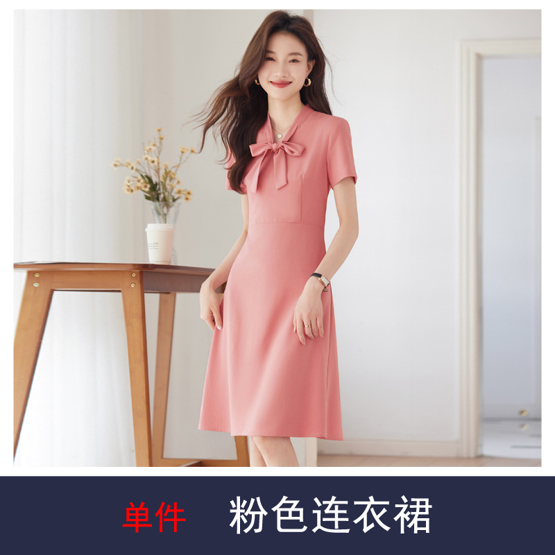 세븐 밸리 니앙 프랑스 스타일 나이 감소 보우 V 넥 반팔 원피스 여름 새로운 우아한 타이트 허리 슬리밍 A 라인 스커트스토어 가기
