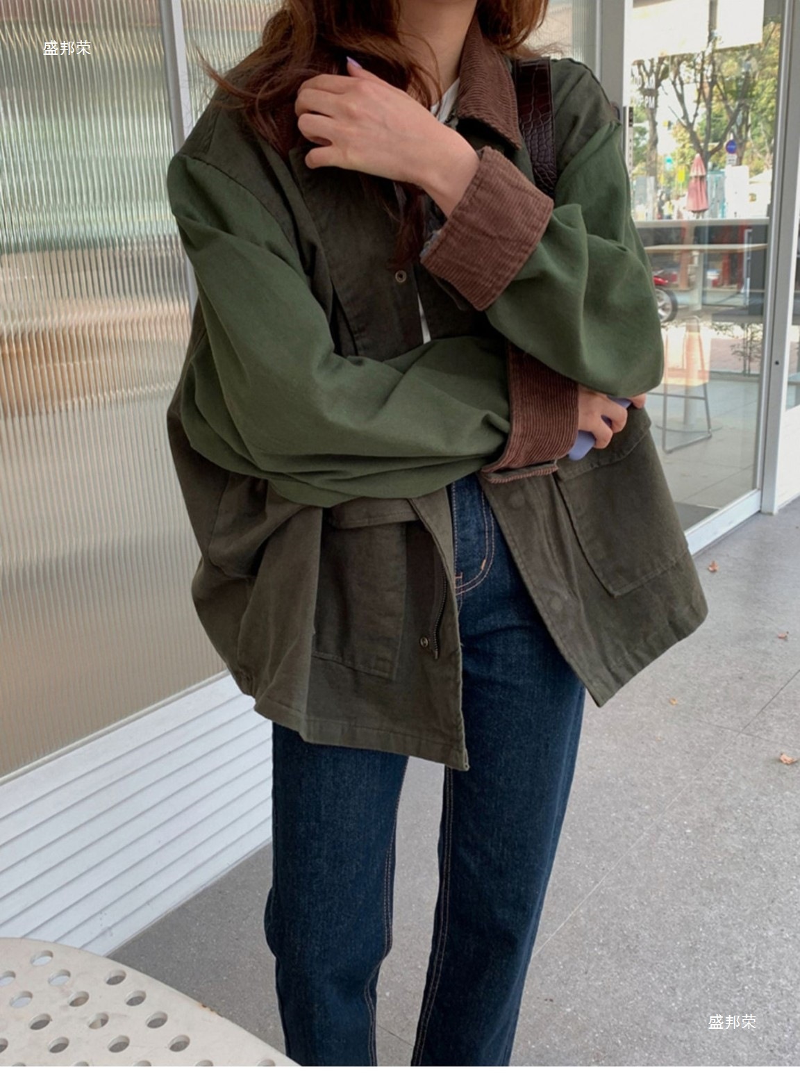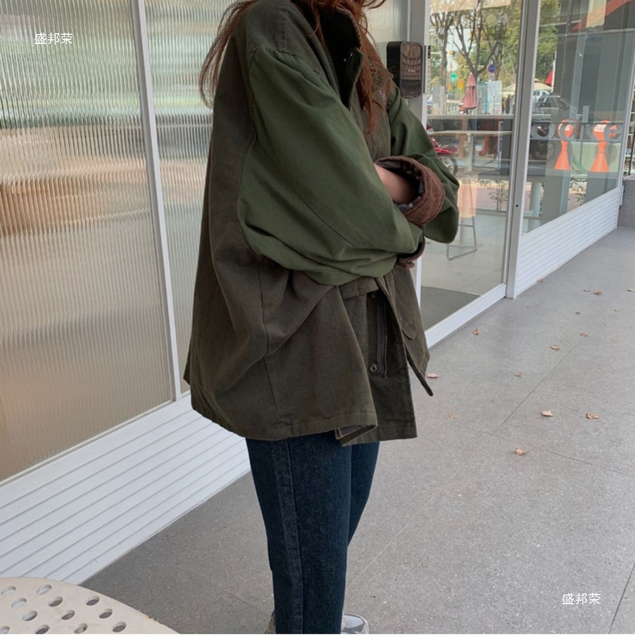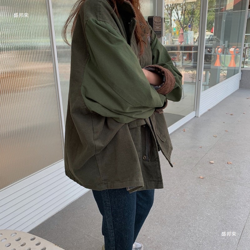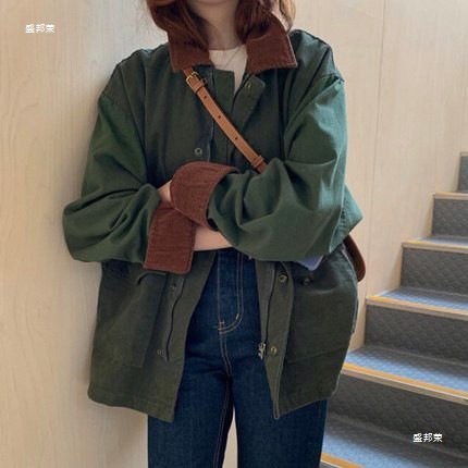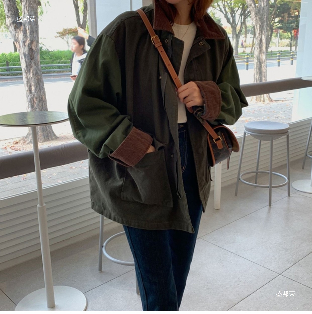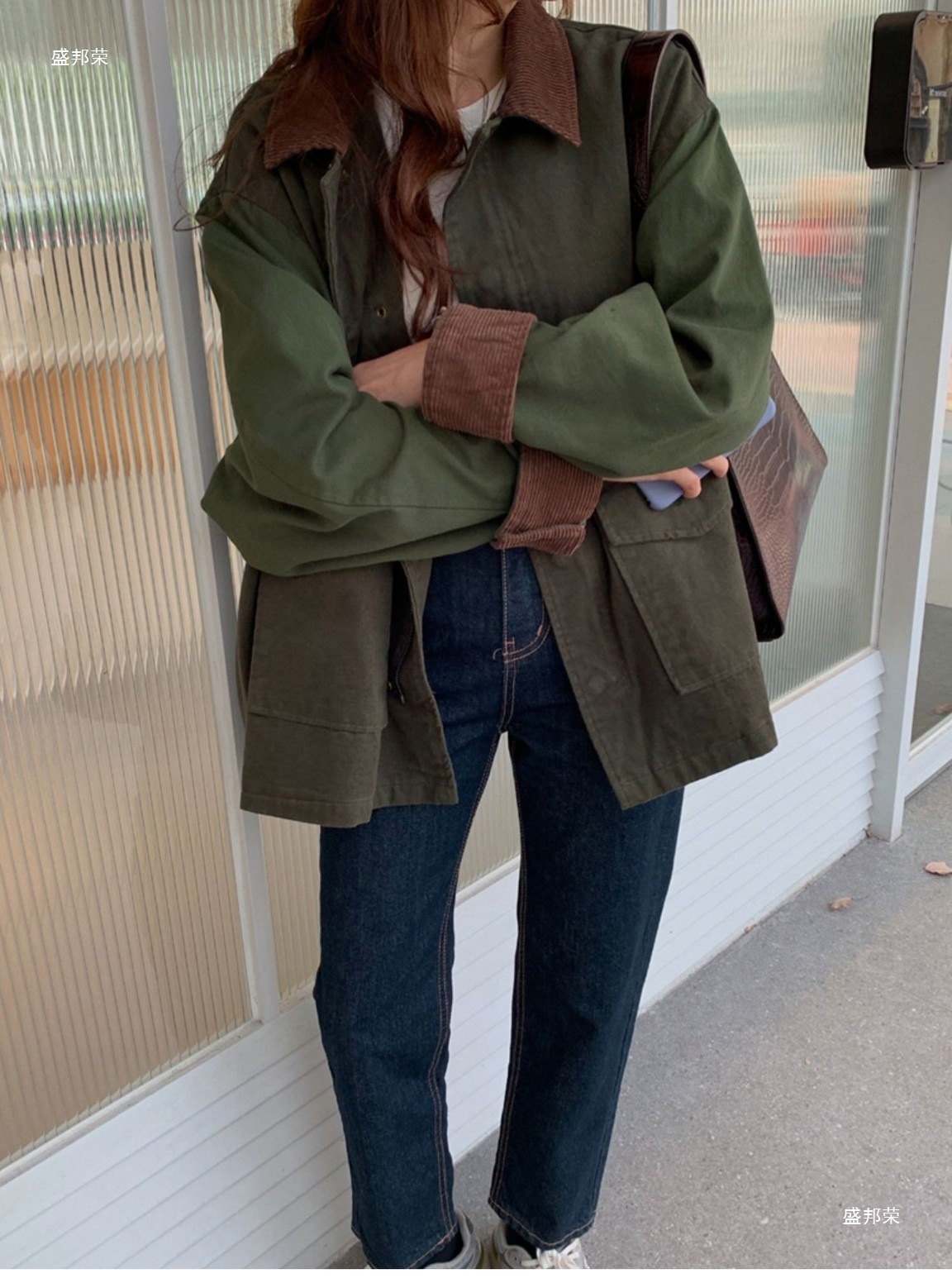 미국식 옷깃 카키 크록 재킷 여성 가을 및 겨울 느슨한 하이 엔드 캐주얼 레트로 중간 길이의 코트 탑스토어 가기