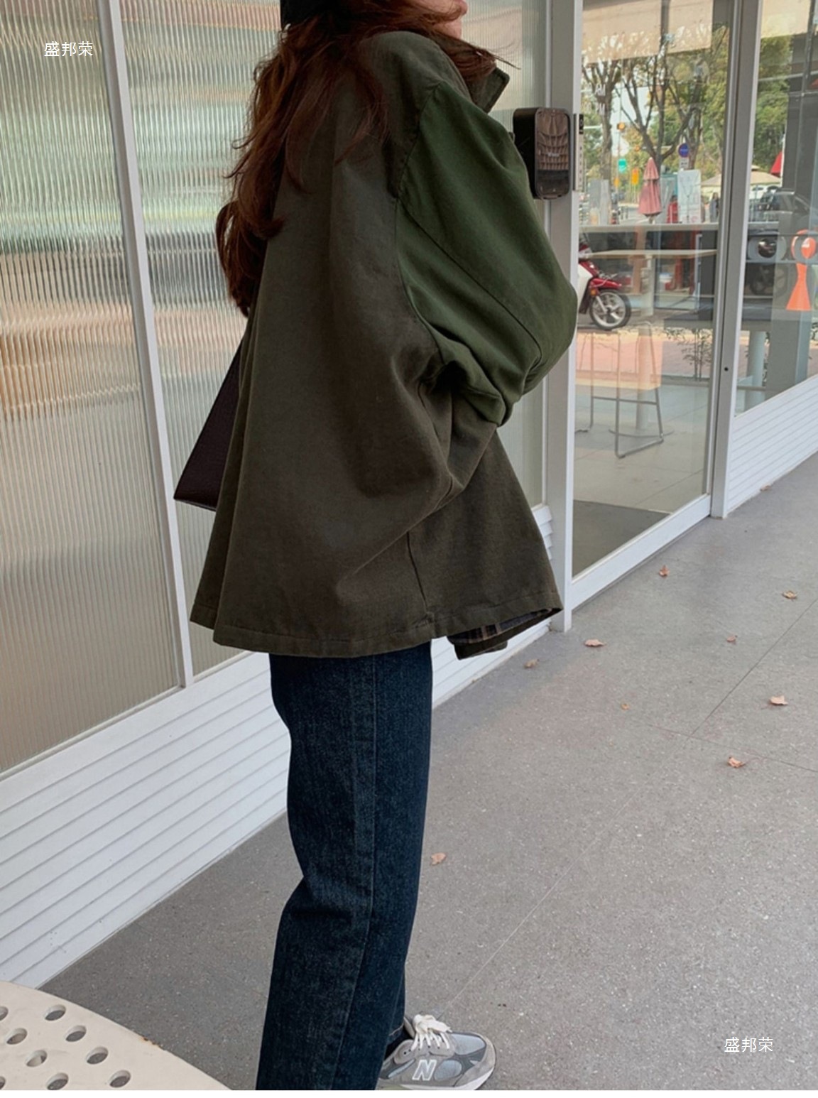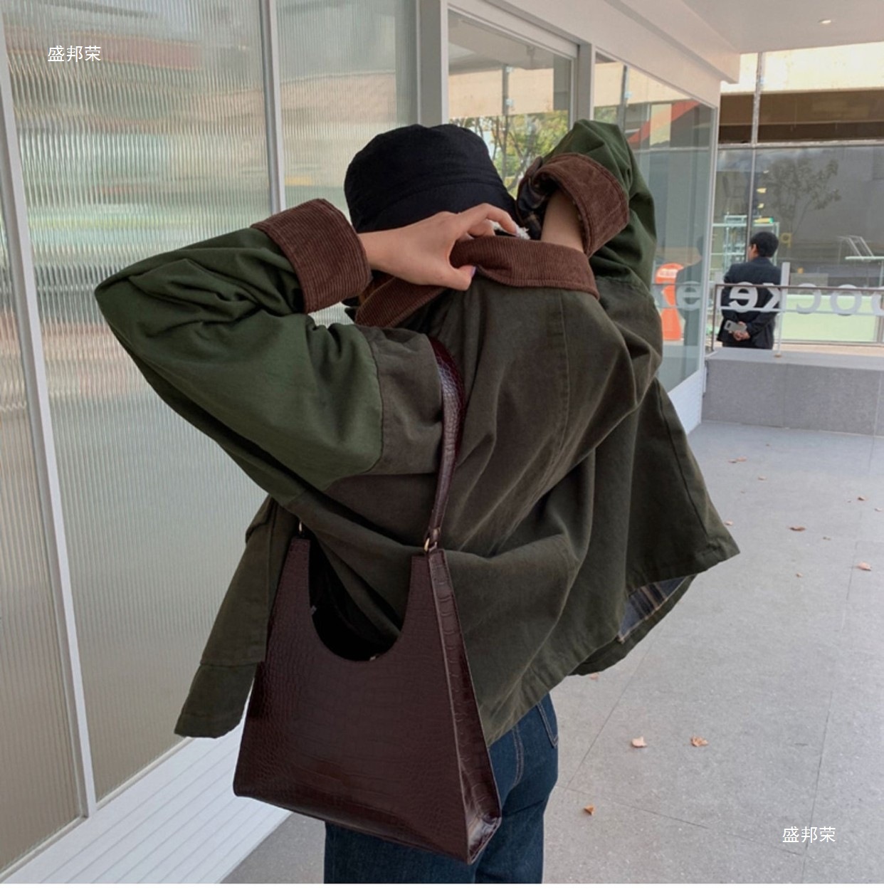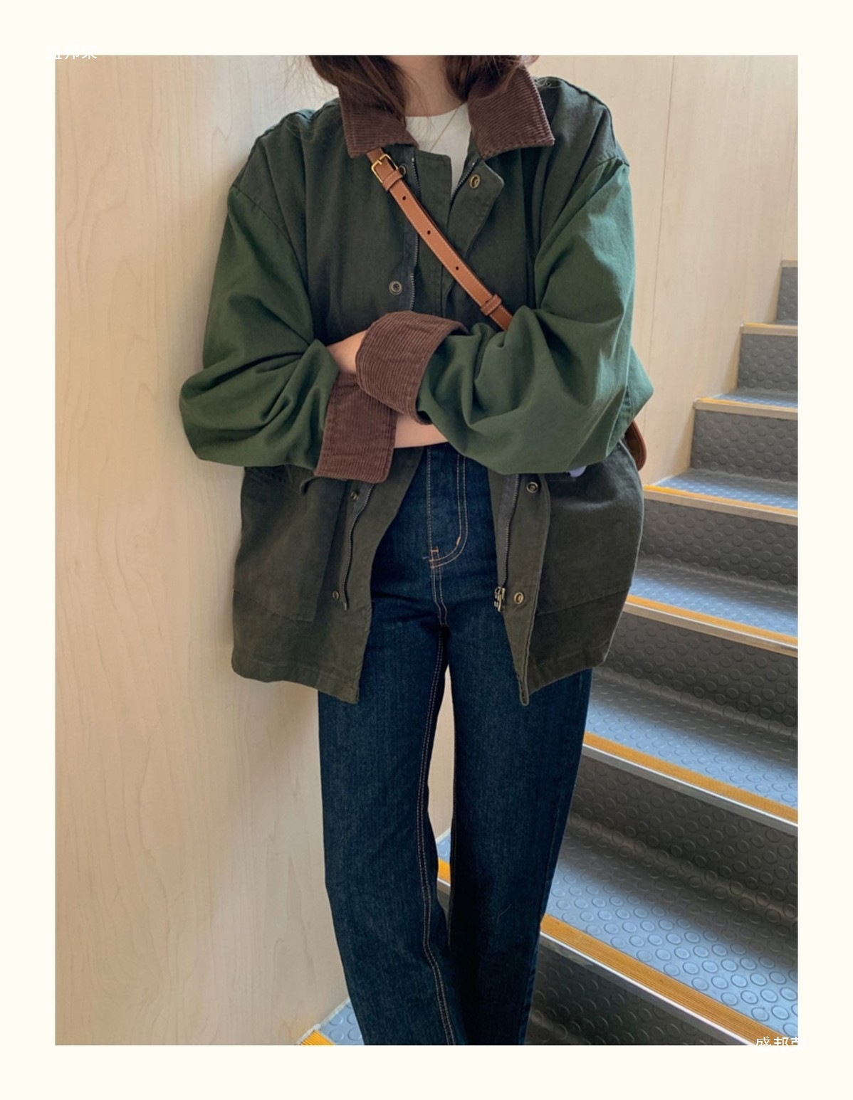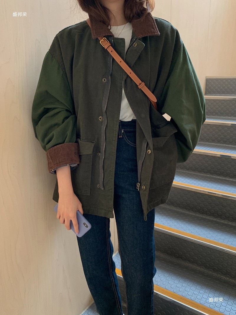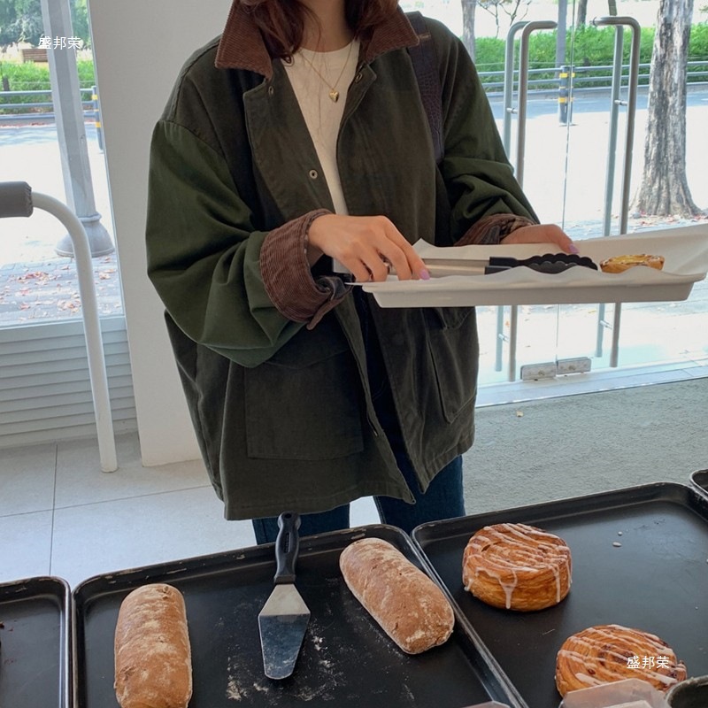 미국식 옷깃 카키 크록 재킷 여성 가을 및 겨울 느슨한 하이 엔드 캐주얼 레트로 중간 길이의 코트 탑스토어 가기