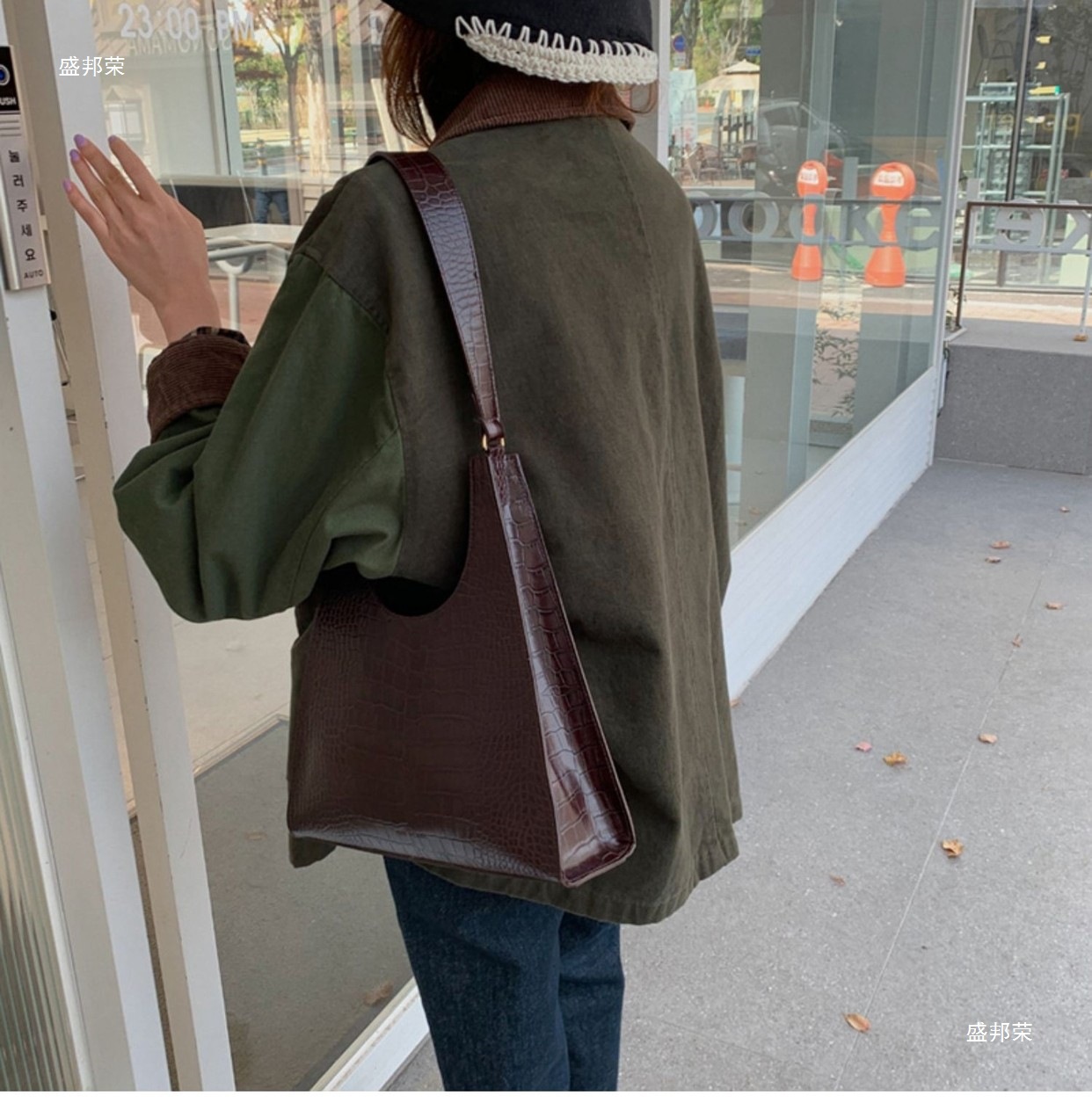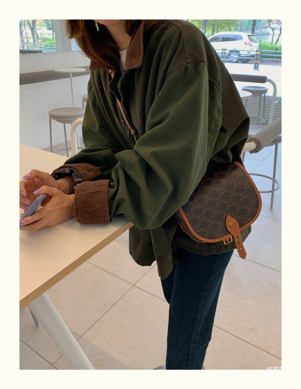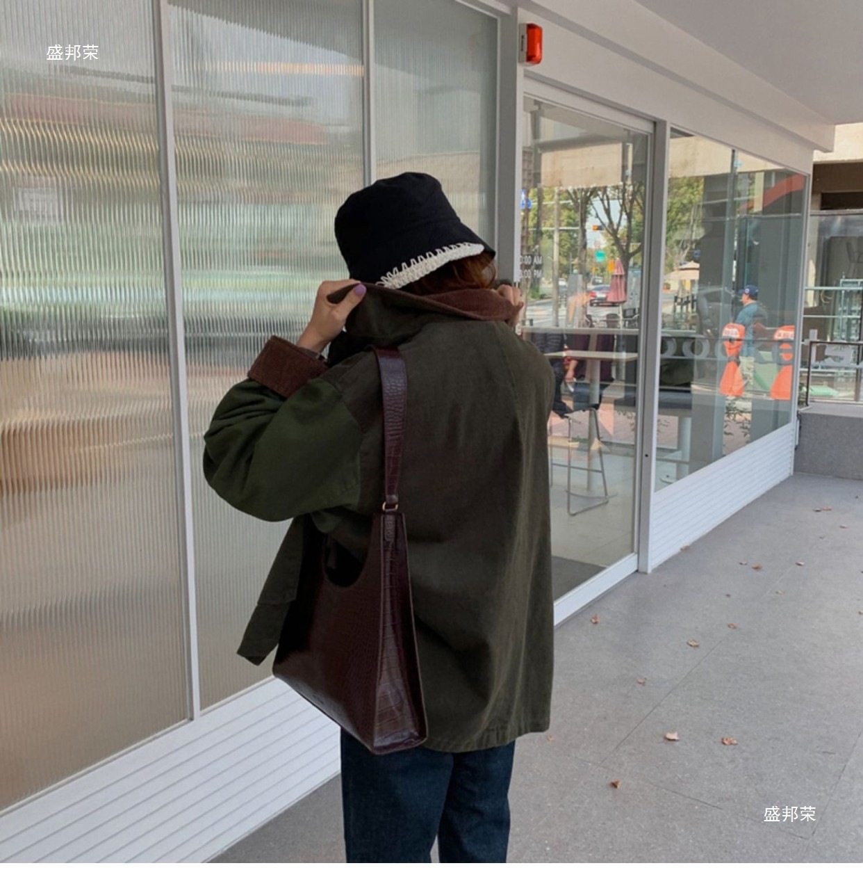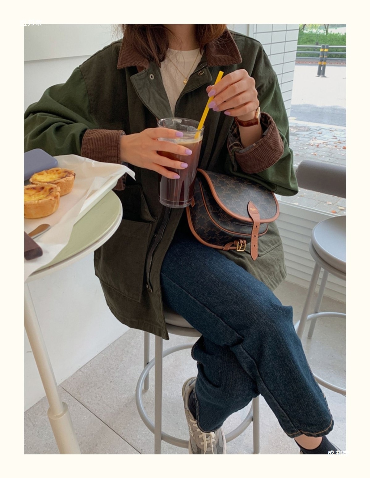 미국식 옷깃 카키 크록 재킷 여성 가을 및 겨울 느슨한 하이 엔드 캐주얼 레트로 중간 길이의 코트 탑스토어 가기