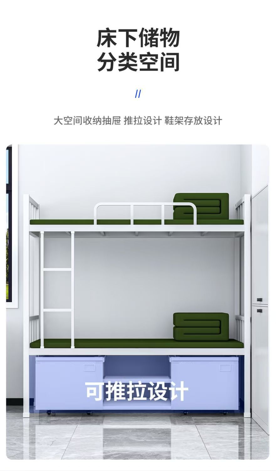 표준 캠프기구 패딩 소방 단층 침대 저장 캐비닛이있는 모든 것을 포함하는 매트리스 강철 목재 침대 아파트 기숙사스토어 가기