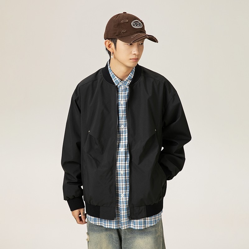 2025 구조 주름 디자인 감각 남자의 봄과 가을 단색 유행 브랜드 야구 세트 재킷 미국 비행사 재킷스토어 가기