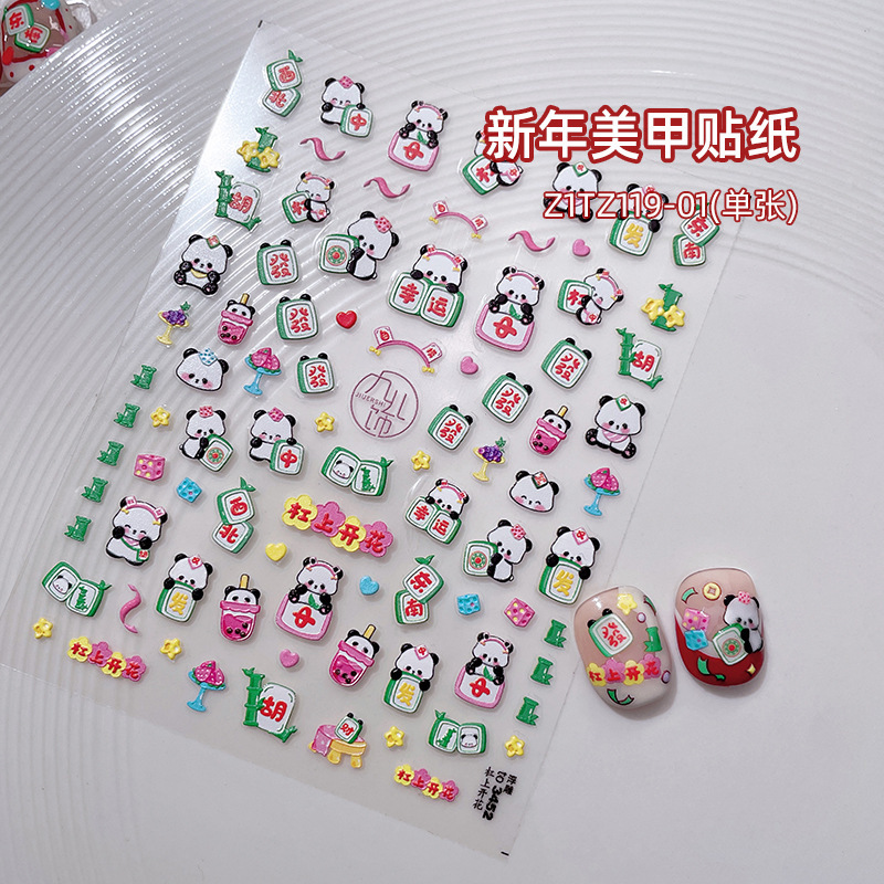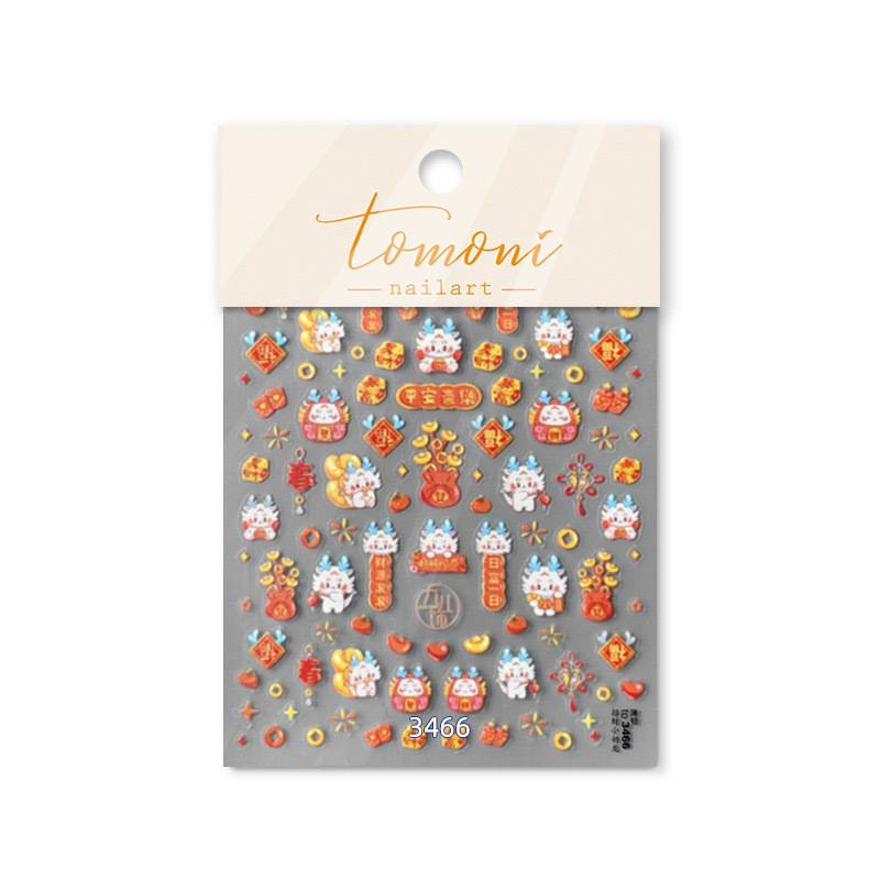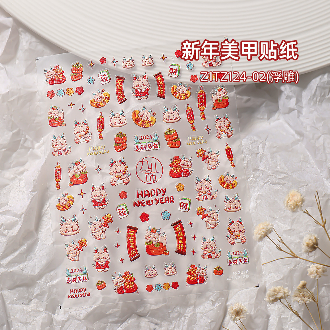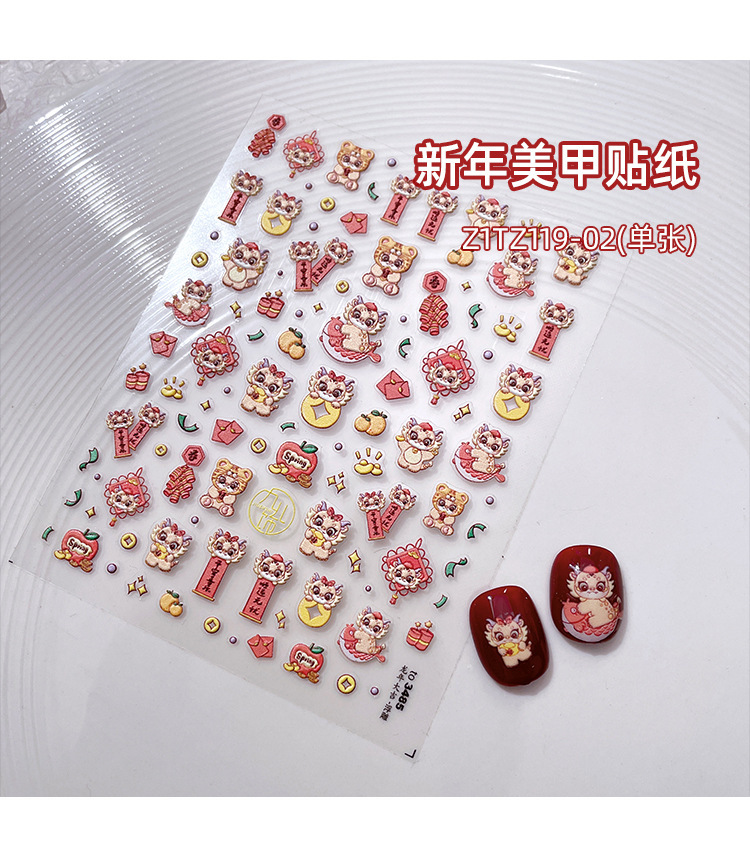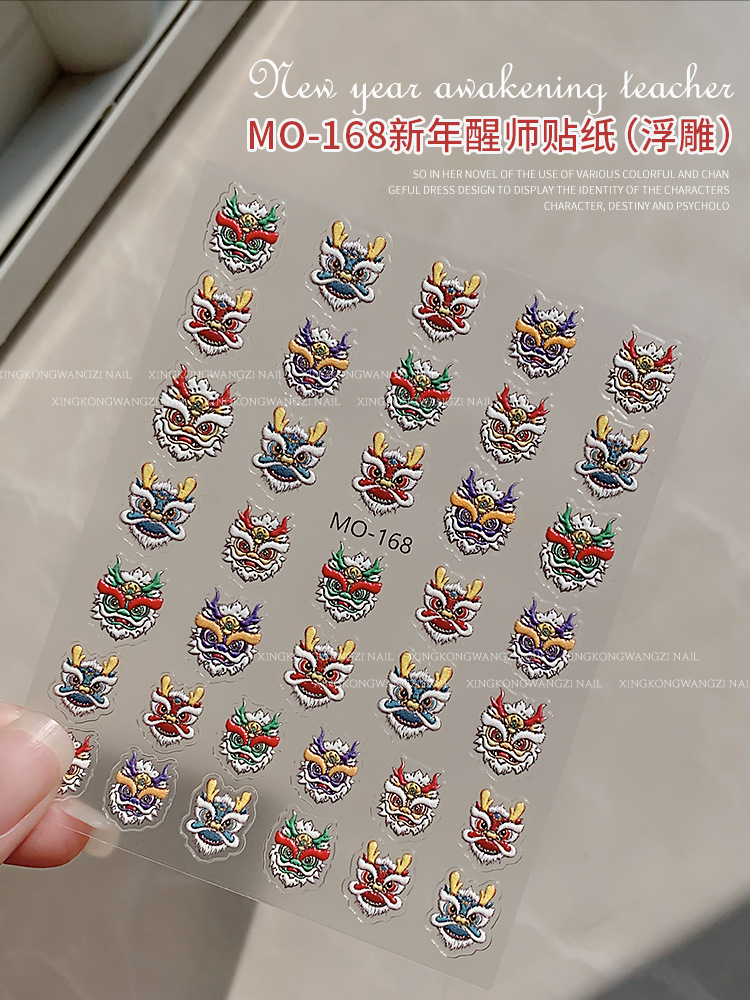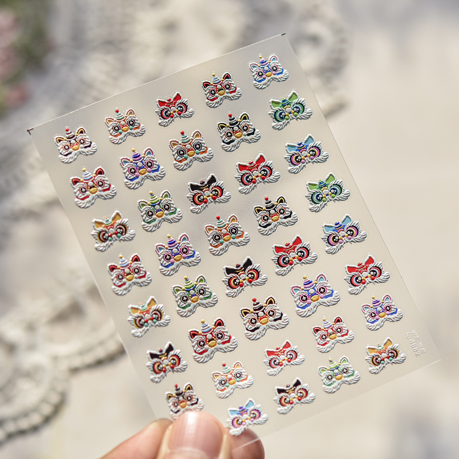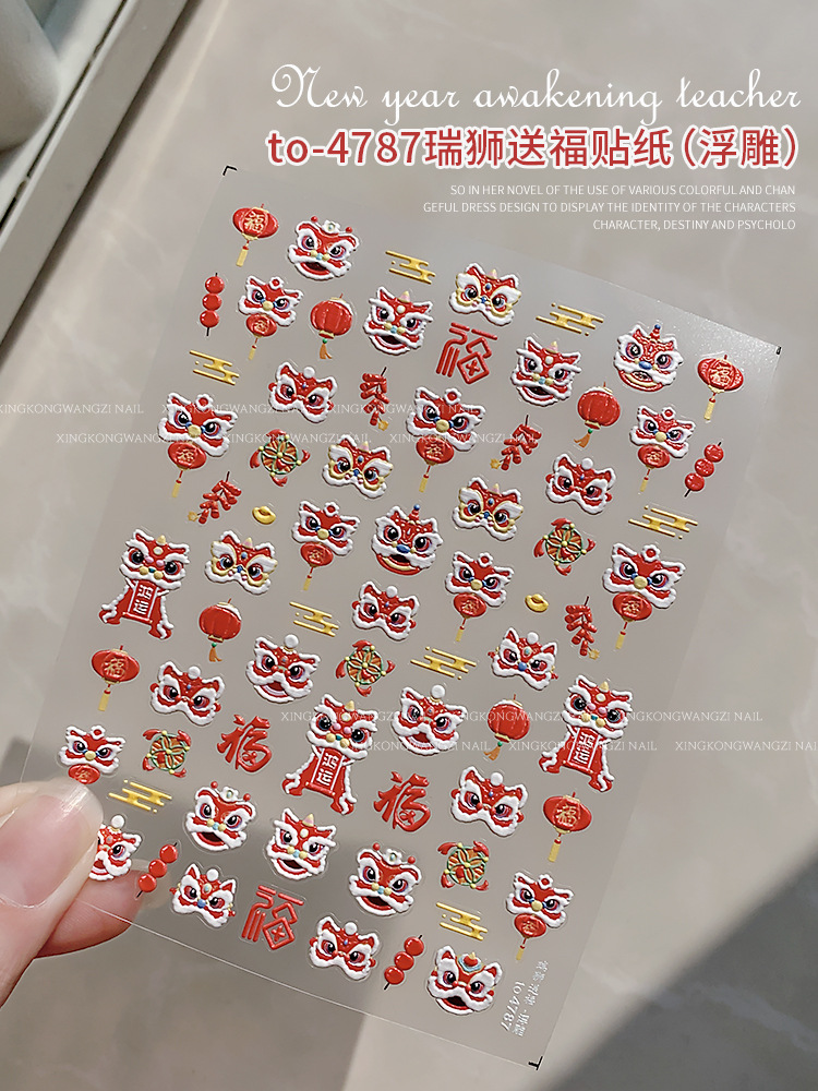 2025 봄 축제 축제 네일 아트 스티커 뱀 새해 폭발 길조 사자 댄스 스테레오 릴리프 네일 스티커