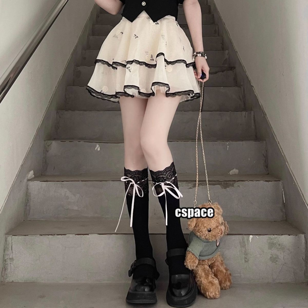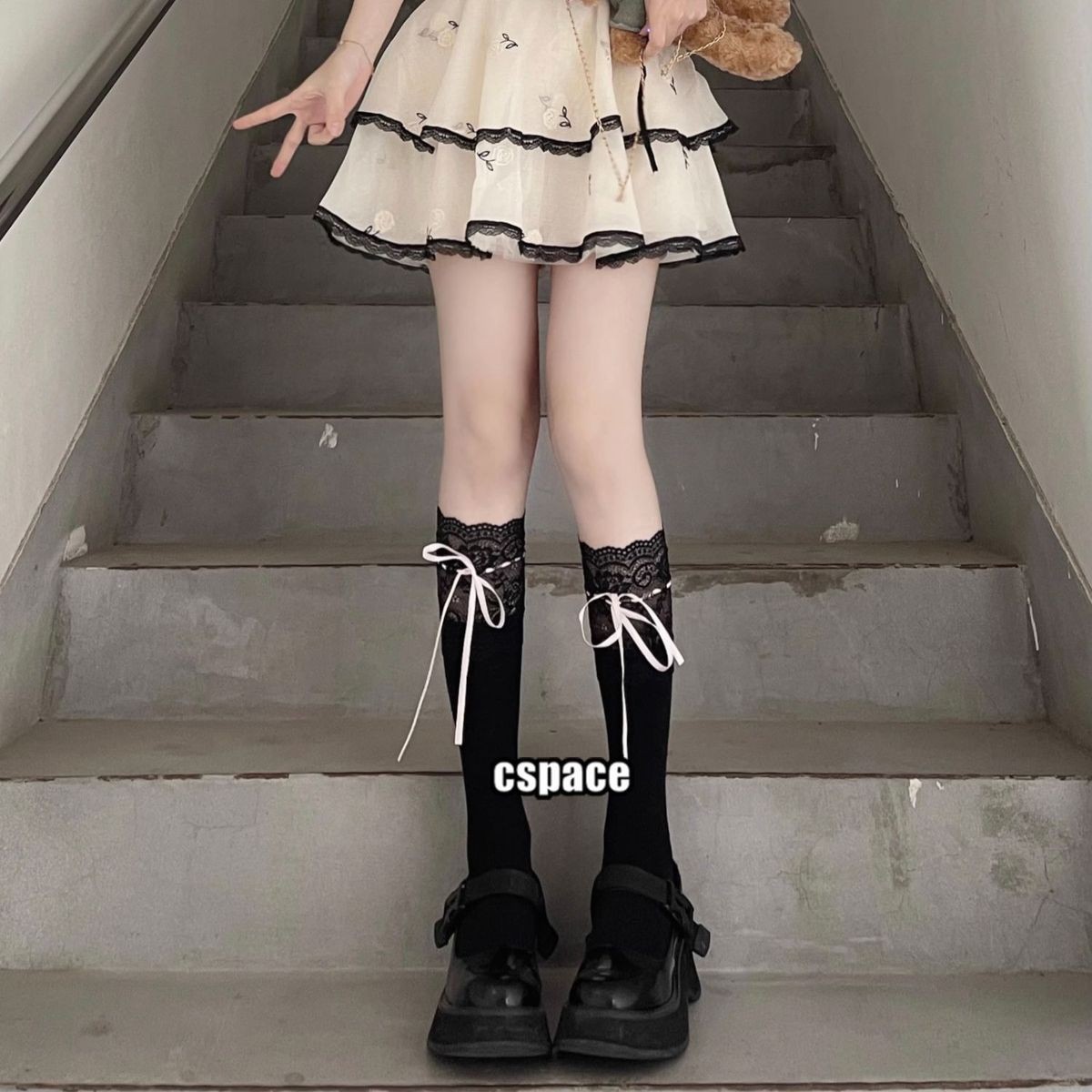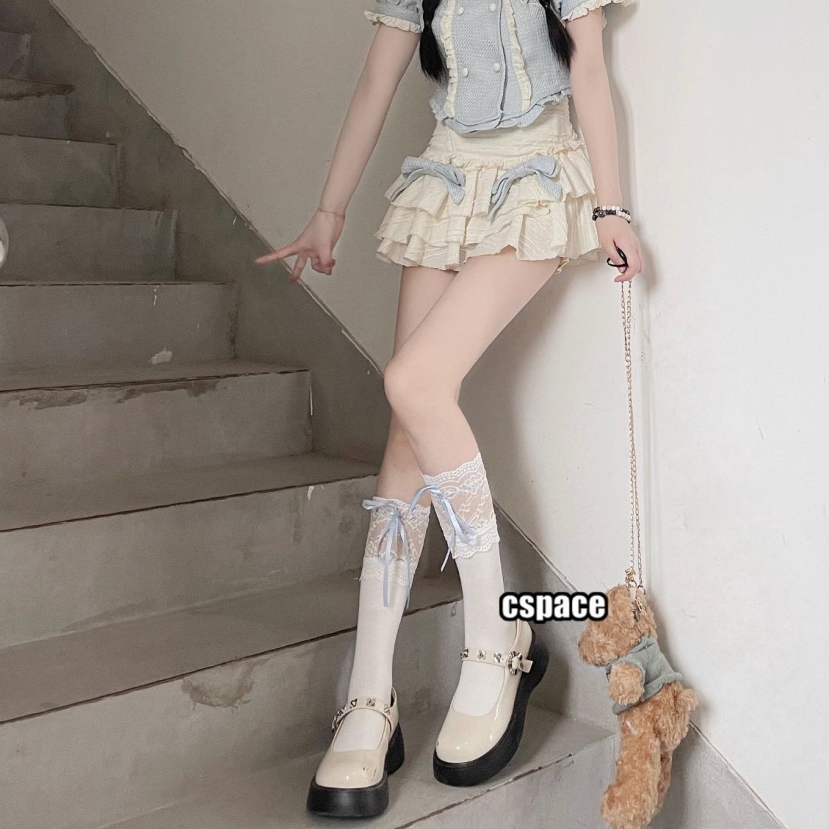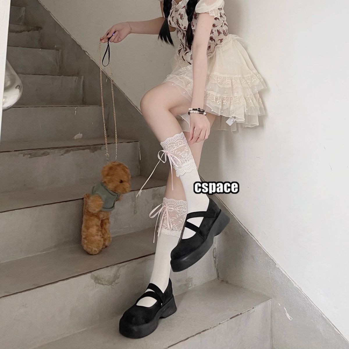 로리타 스위트 걸 화이트 올 매치 레이스 송아지 양말 Jk 일본 레이스 리본 활 미드 튜브 양말스토어 가기