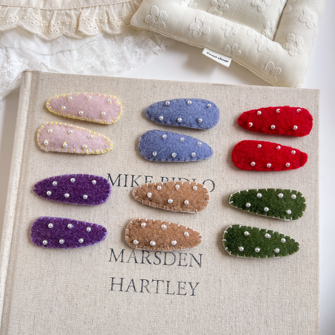 이른 봄 진주 머리핀 속보 클립 원단 수제 틈새 디자인 어린이 머리핀 뱅 사이드 클립 헤어 액세서리