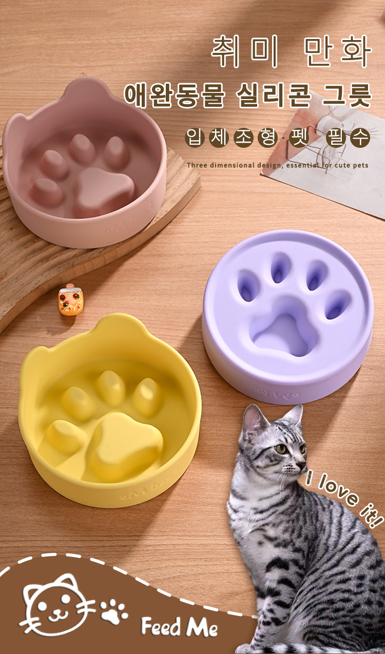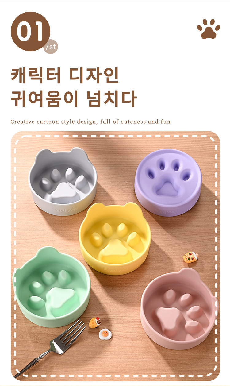 한국 식품 학년 실리콘 고양이 식품 분지 귀여운 고양이 발톱 애완 동물 그릇 고양이 개 음식 그릇 마시는 그릇 밥 그릇 식기스토어 가기