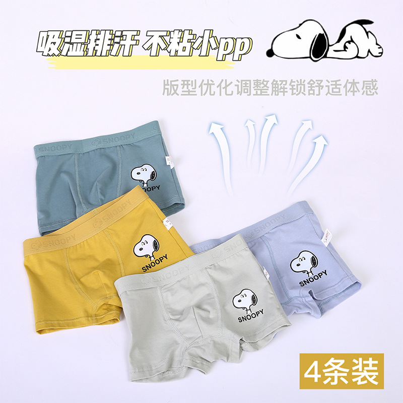 스누피 아동용 남아 순면 사각팬티, 남아용 순면 반바지, 유아~중대형 아동용(9-12세), 가을·겨울스토어 가기