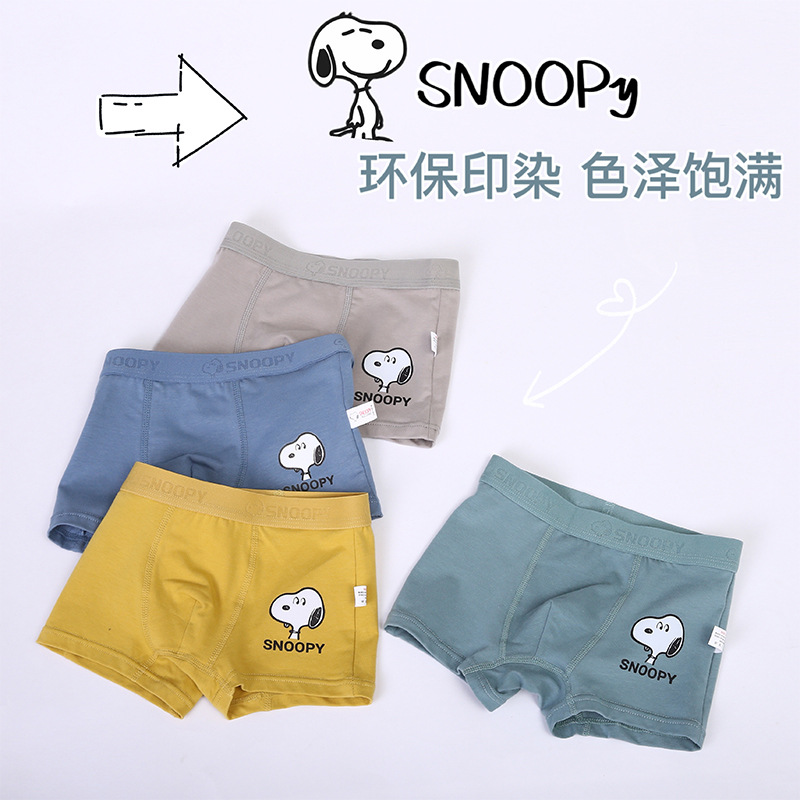 스누피 아동용 남아 순면 사각팬티, 남아용 순면 반바지, 유아~중대형 아동용(9-12세), 가을·겨울