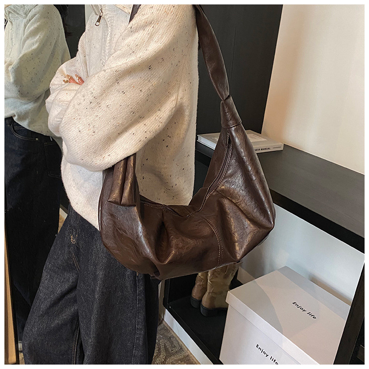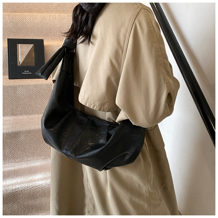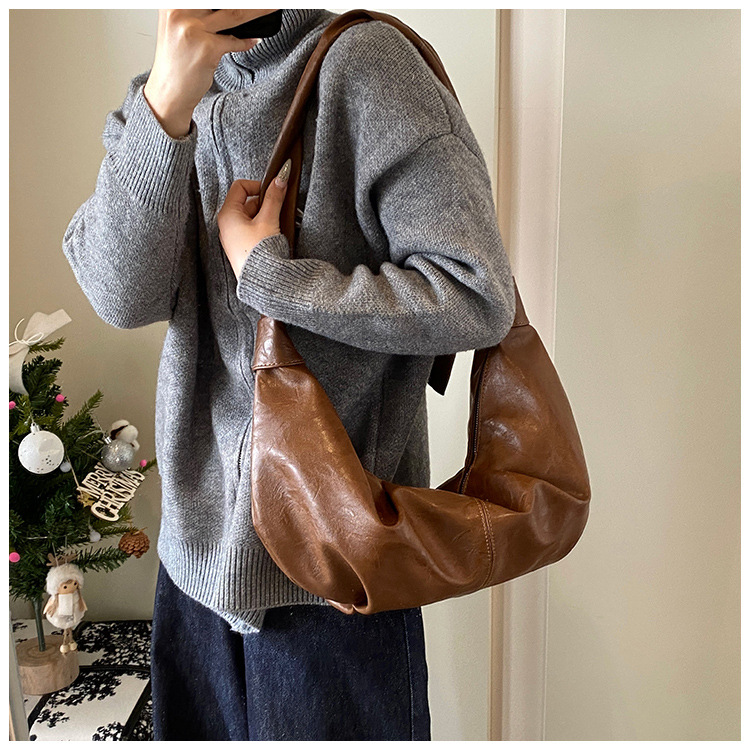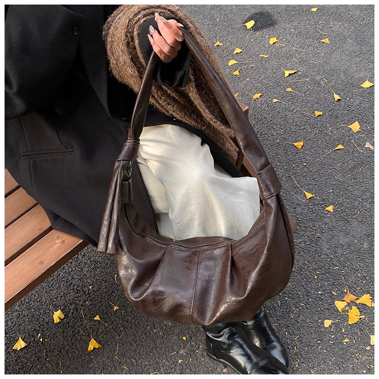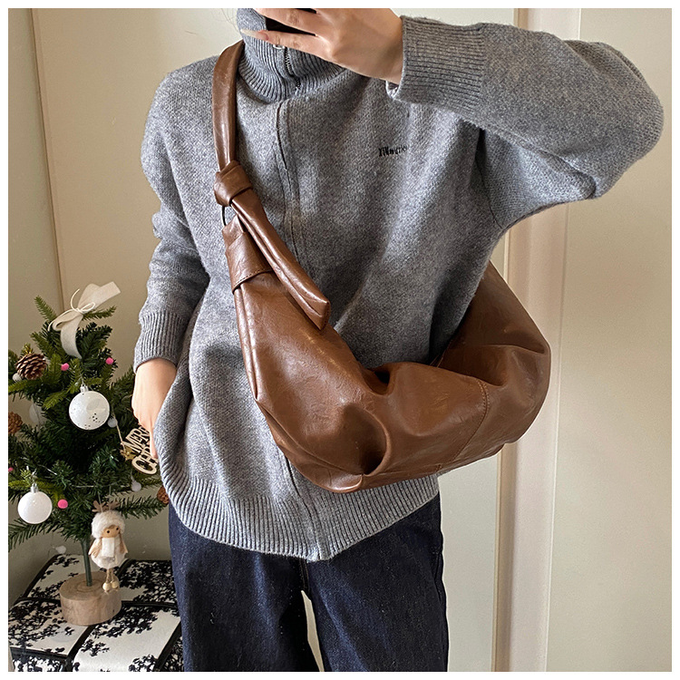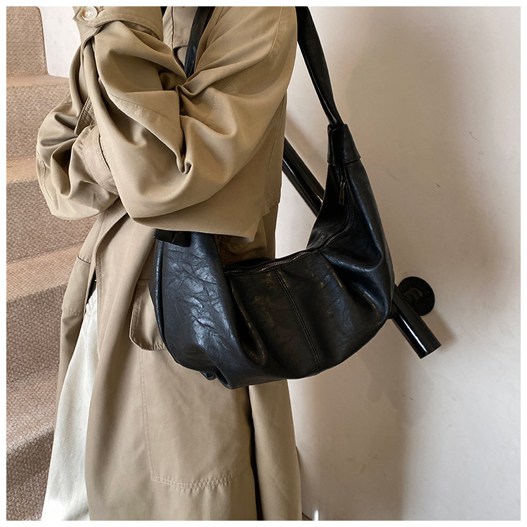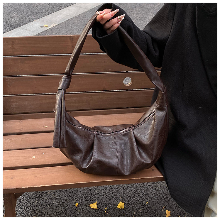 숄더백 크로스보더 레이지 스타일 크로아상백 신상 레트로 니치 숄더/크로스백 고급스러운 주름 덤플링백스토어 가기