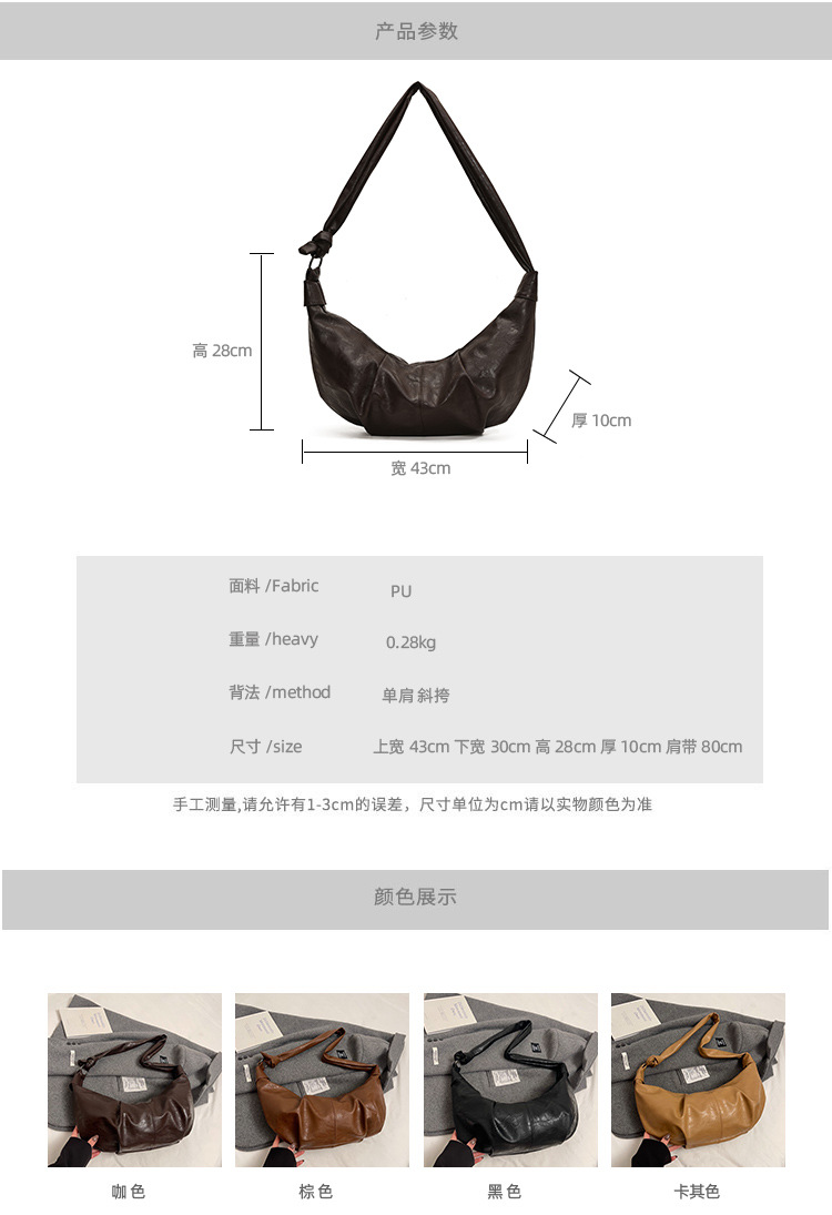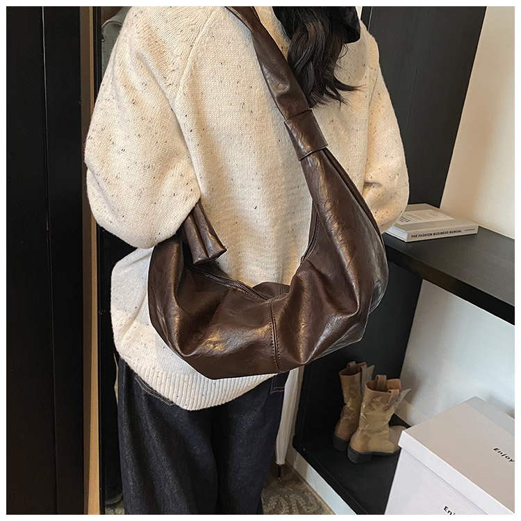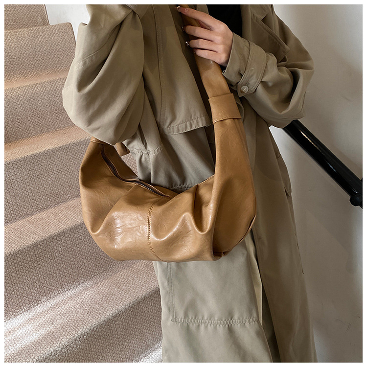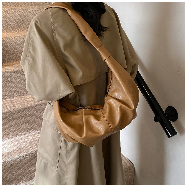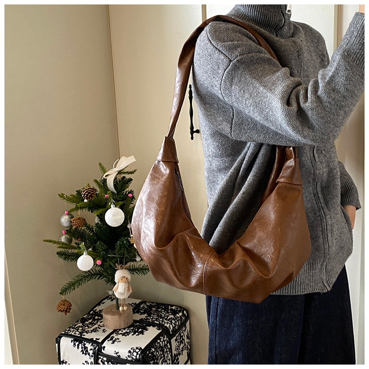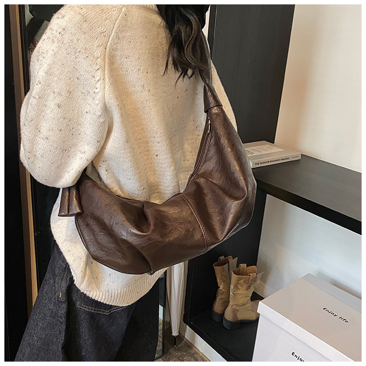 숄더백 크로스보더 레이지 스타일 크로아상백 신상 레트로 니치 숄더/크로스백 고급스러운 주름 덤플링백스토어 가기