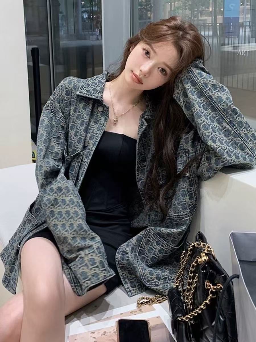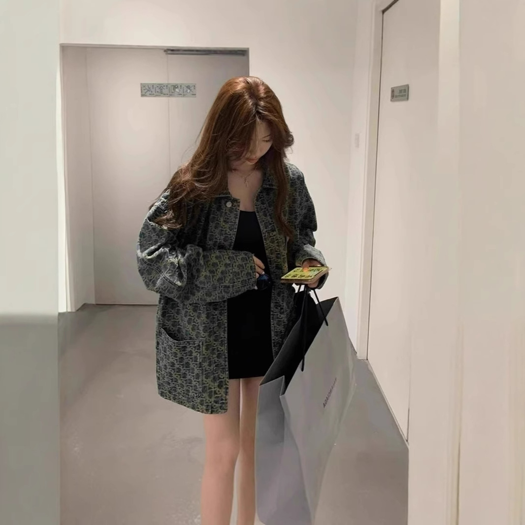 2025 봄 가을 새로운 데님 자켓 레트로 한국 스타일 우아한 여성 틈새 디자인 캐주얼 루즈 슬림 재킷스토어 가기