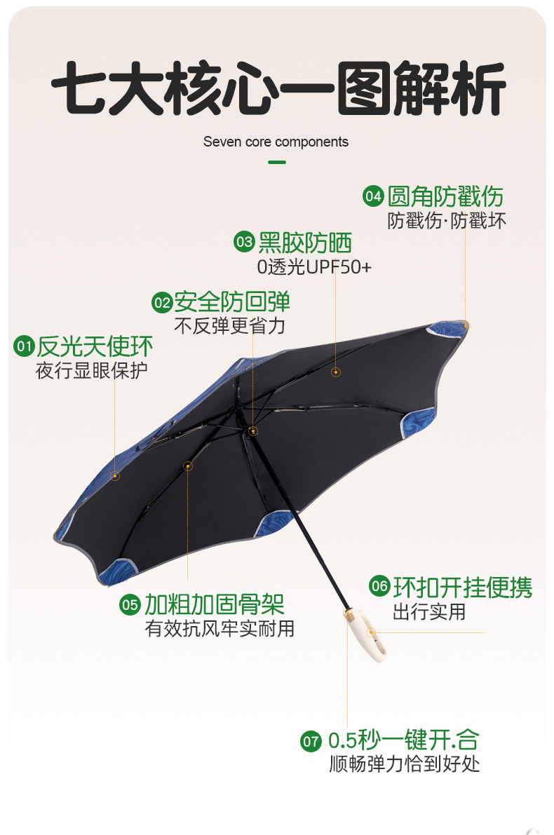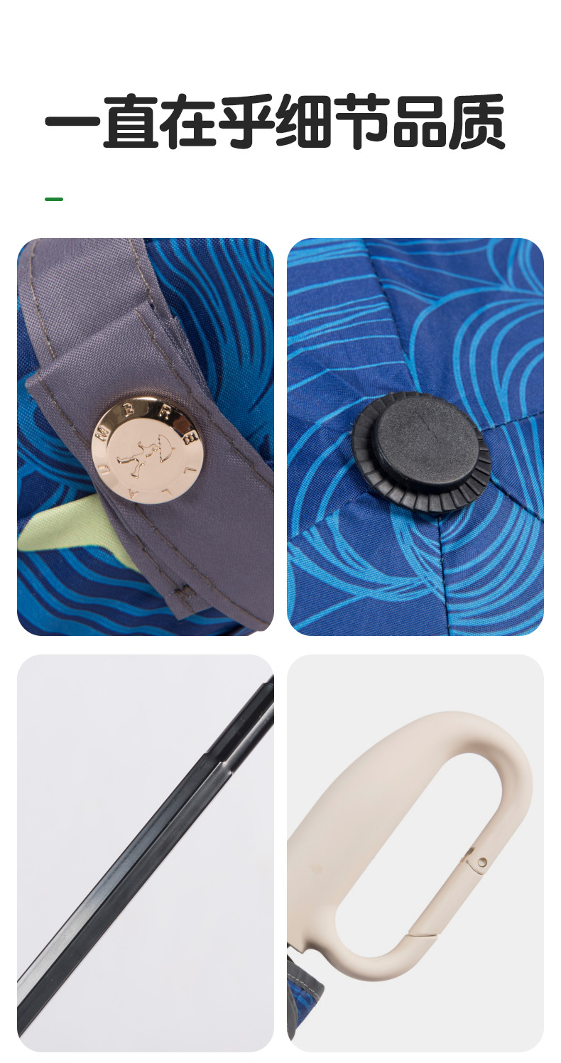 • 진한 파란색(가방을 걸 수 있는 고리 버클 + 찌르는 것을 방지하는 둥근 모서리 + 큰 우산 표면)