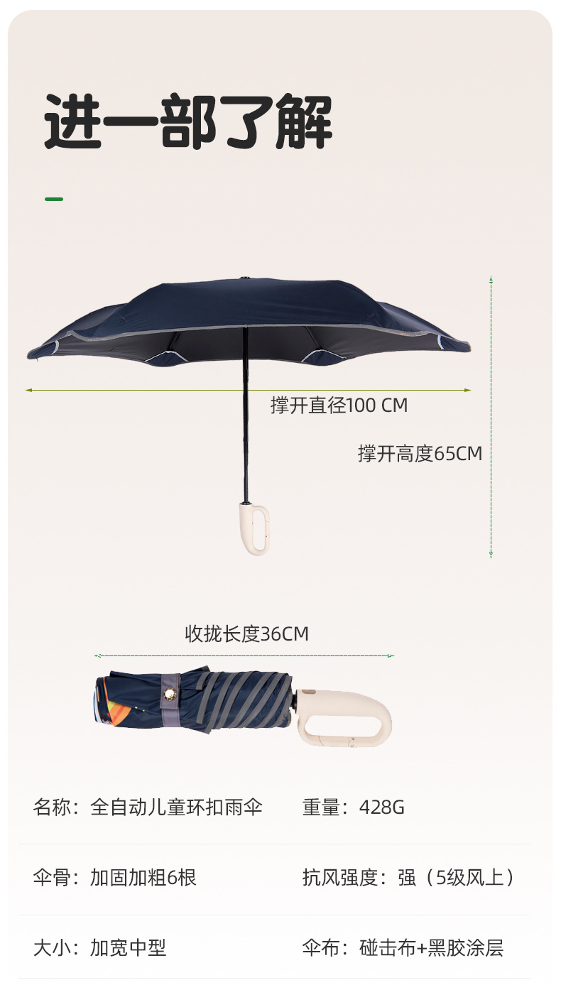 링 버클 휴대용 핸즈프리 반동 방지 필렛 초등학생을위한 완전 자동 어린이 우산