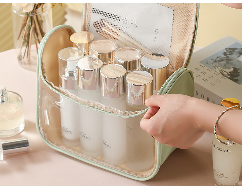 PU 하이 엔드 방수 투명 화장품 가방 대용량 휴대용 휴대용 저장 가방 여행 수영 가방 세탁 가방