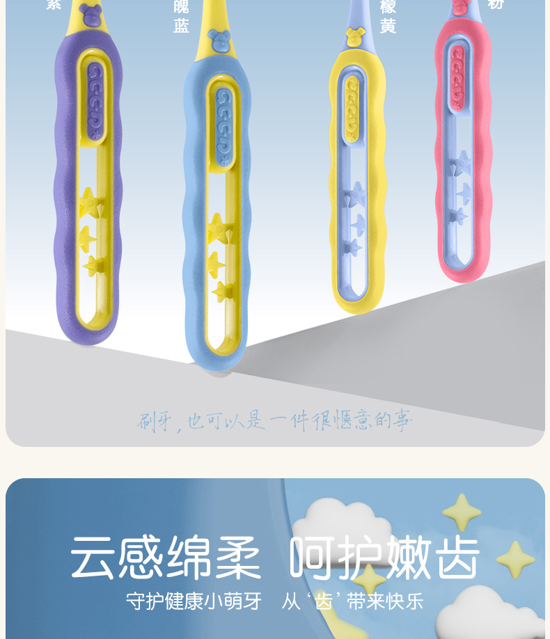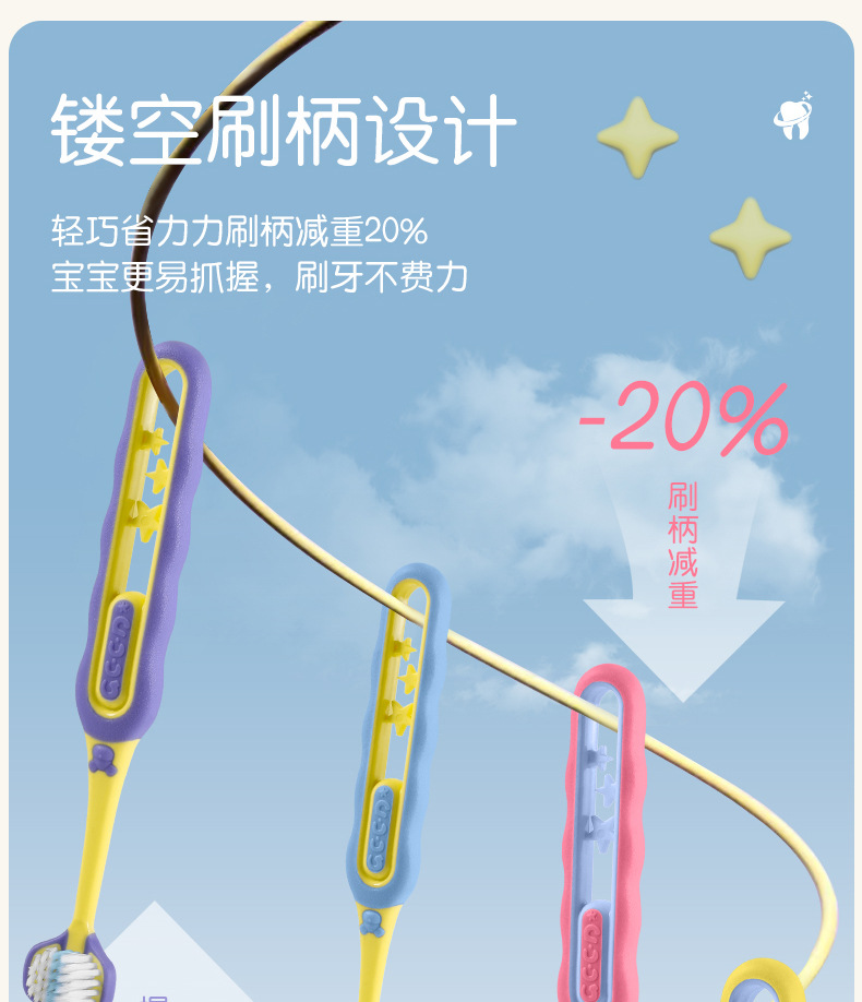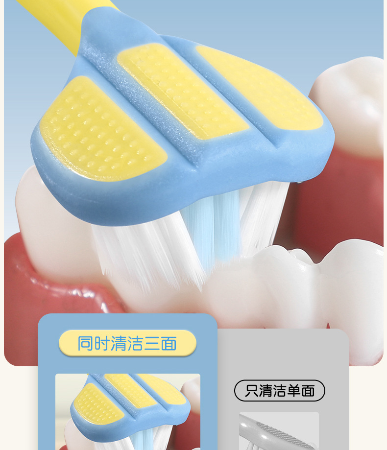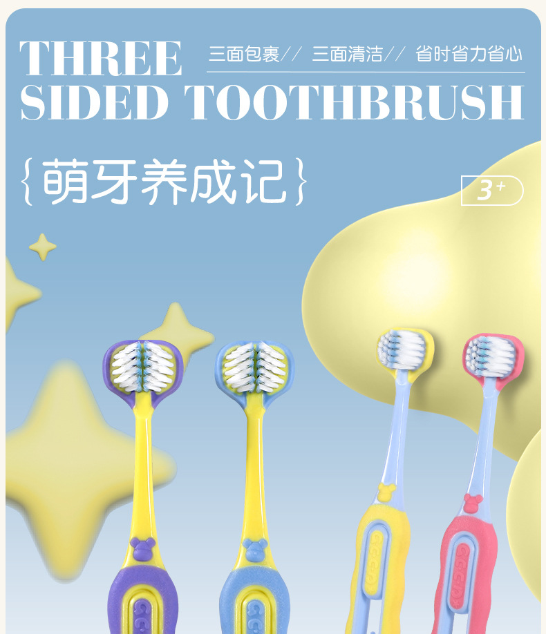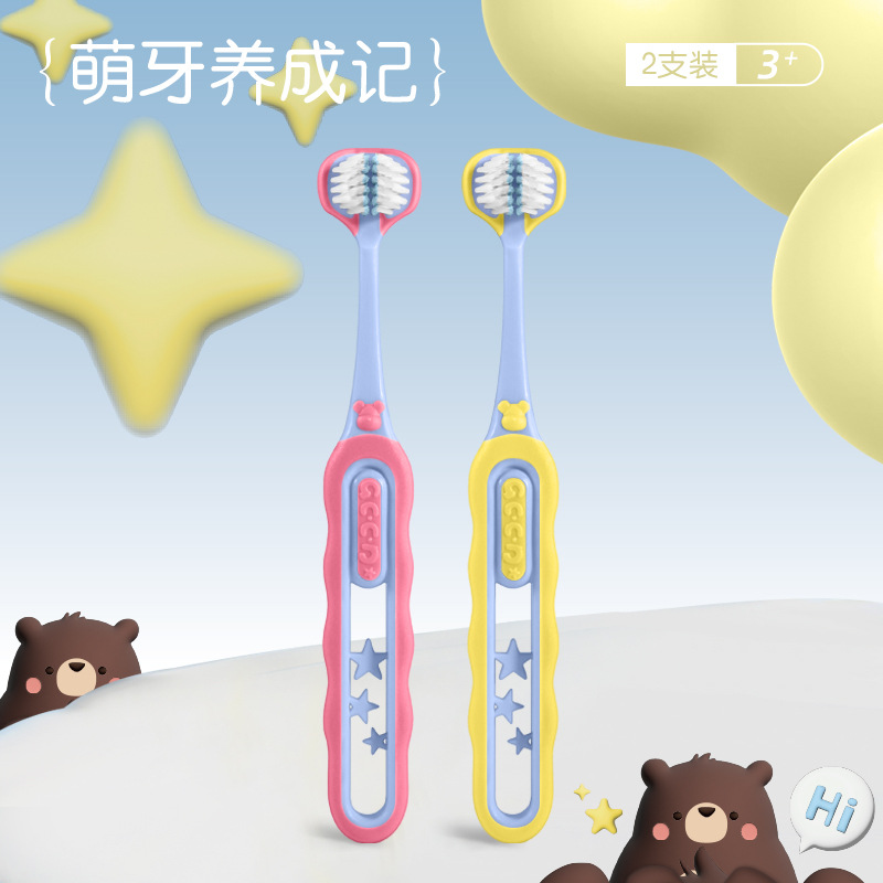 [2 명의 어린이 3 면 칫솔] 6 ~ 12 세 부드러운 머리 3 머리 어린이 칫솔 홈 속이 빈 별스토어 가기