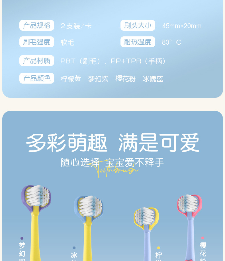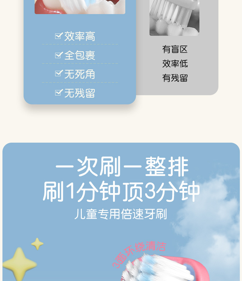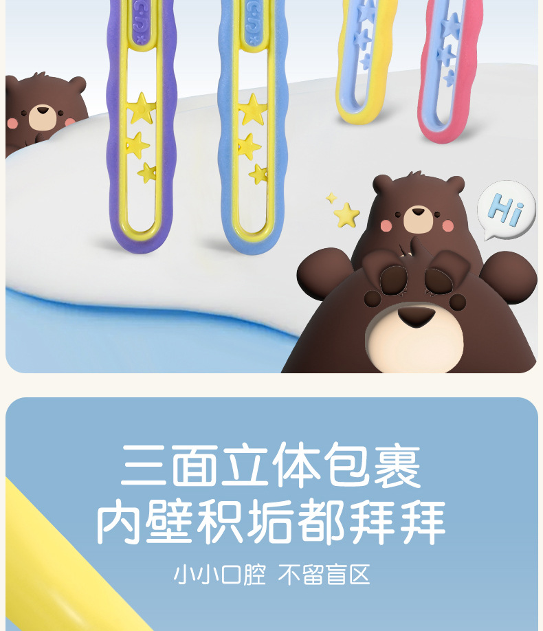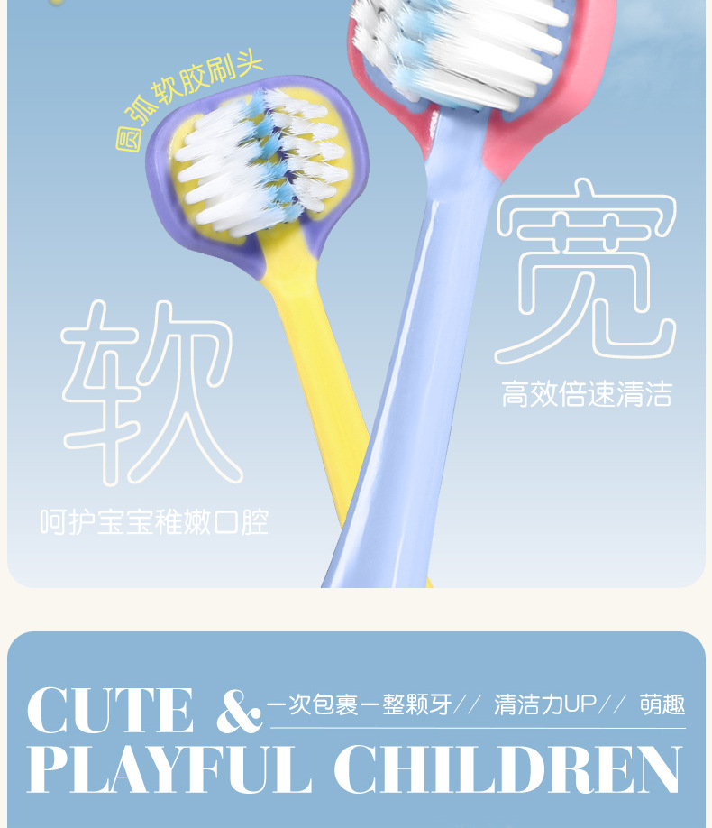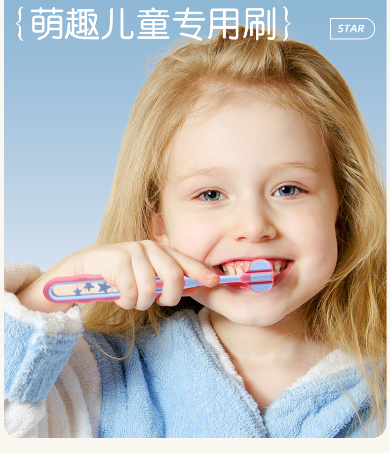 [2 명의 어린이 3 면 칫솔] 6 ~ 12 세 부드러운 머리 3 머리 어린이 칫솔 홈 속이 빈 별