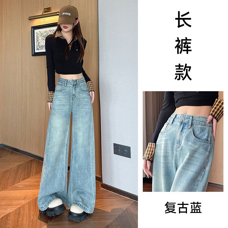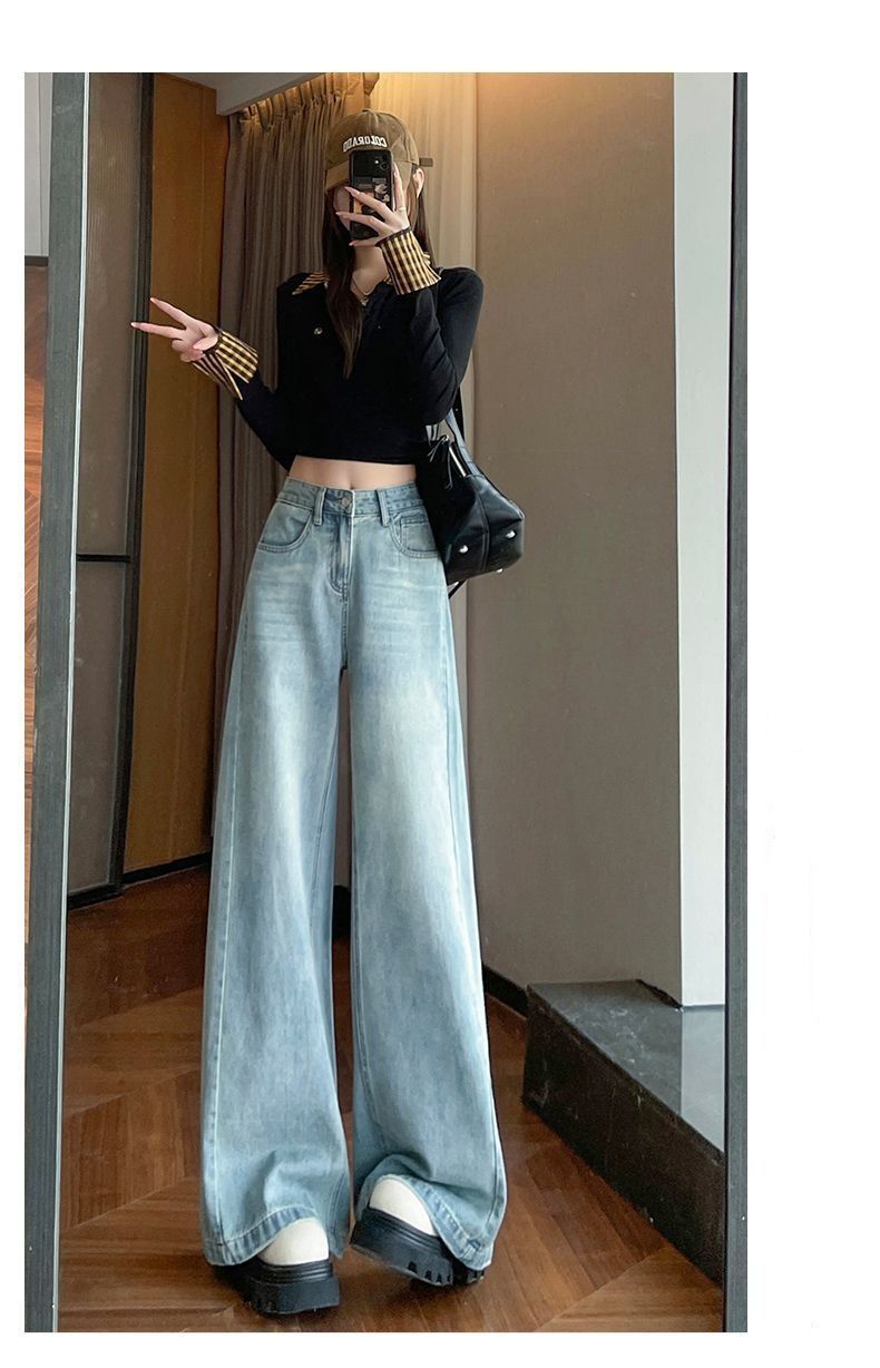 빈티지 높은 허리 넓은 다리 청바지 여성의 2025 봄 새로운 슬림 핏 느슨한 미국 스타일 스트레이트 바지스토어 가기