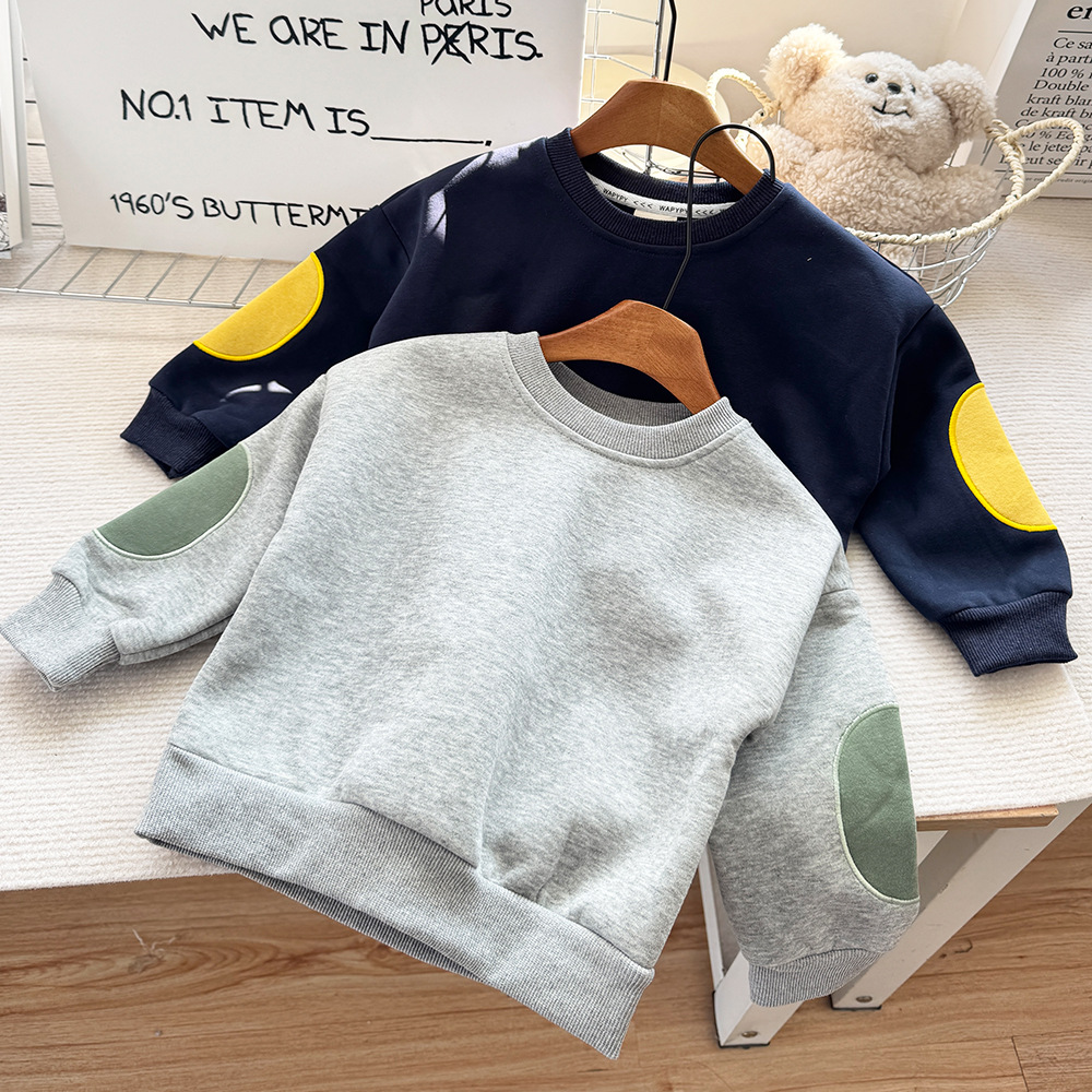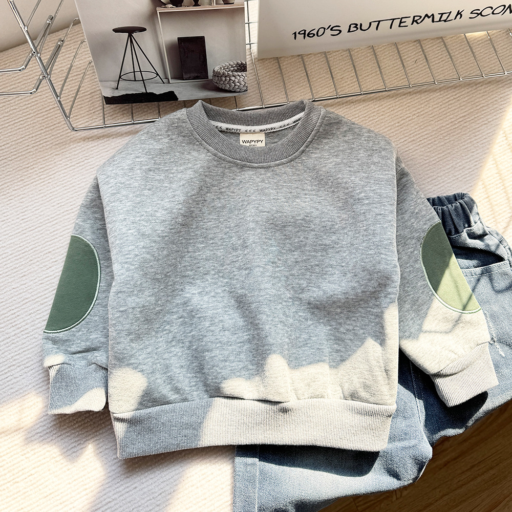 어린이 간단한 둥근 목 스웨터 봄과 가을 새로운 남자 아기베이스 풀오버 어린이 캐주얼 와이드 어깨 긴 소매 탑스토어 가기