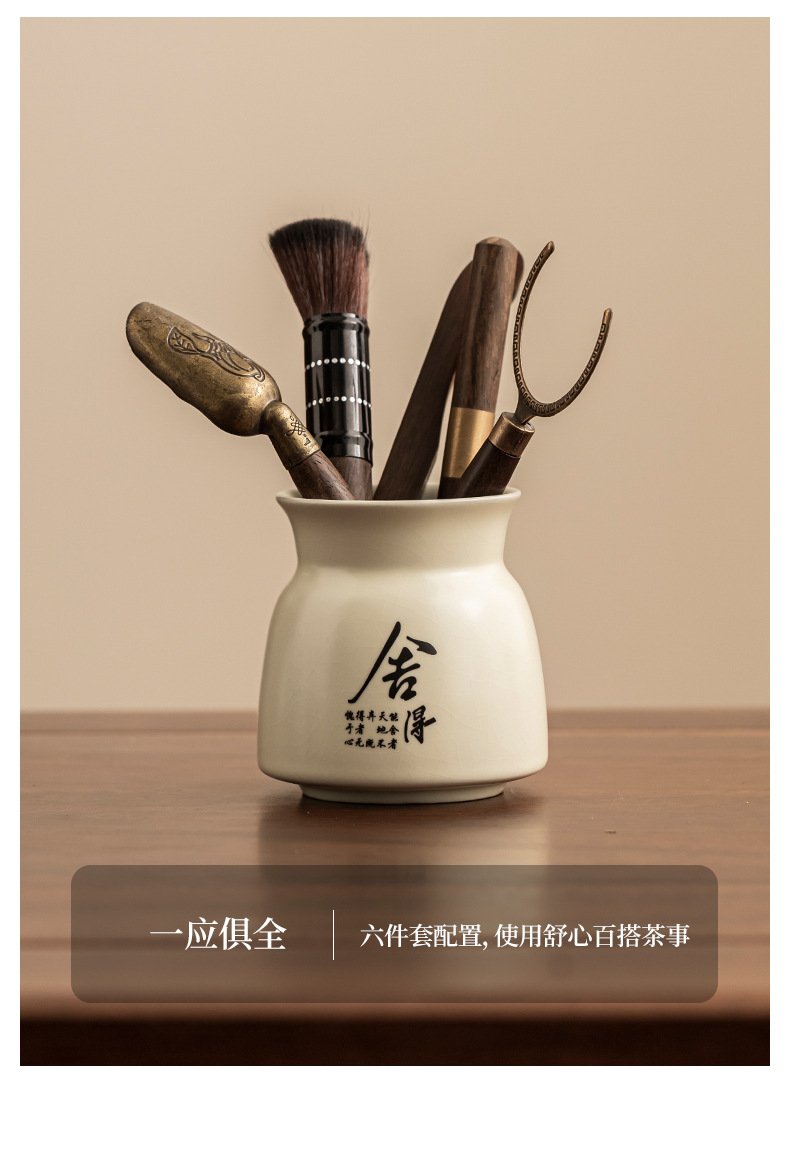 루 가마 다도 6 명의 신사 세트 차 만들기 도구 전체 세트 티 클립 티 나이프 바늘 티 세트 액세서리 다도 배럴 보관스토어 가기