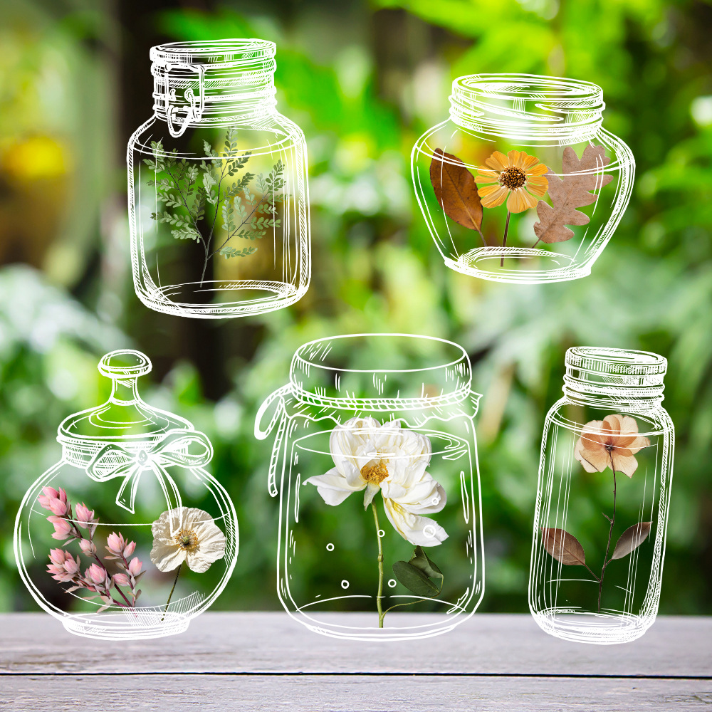Yiyao JD2334 아마존 새로운 식물 꽃 말린 꽃 물병 창 스티커 몰 장식 접착제없는 정전기 스티커