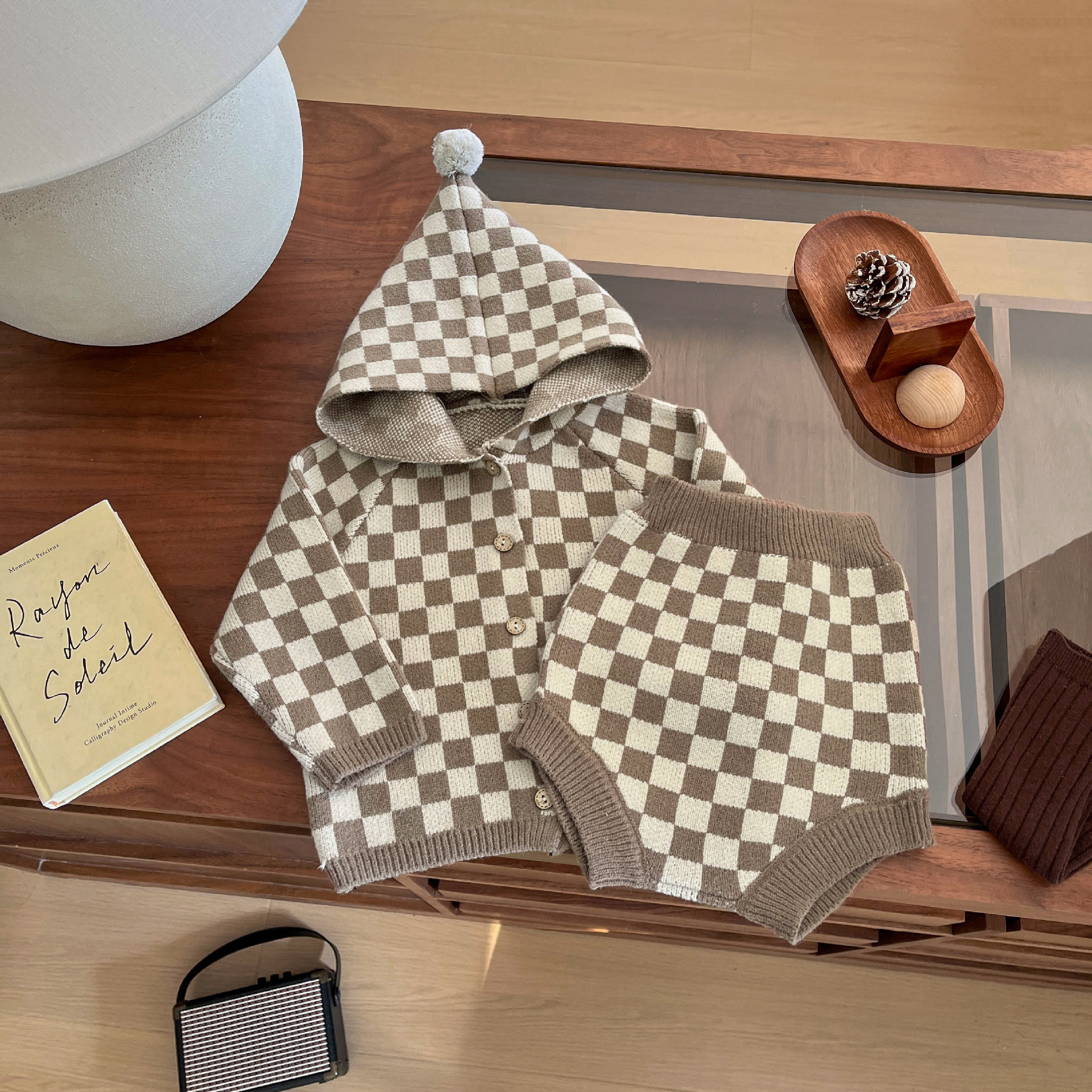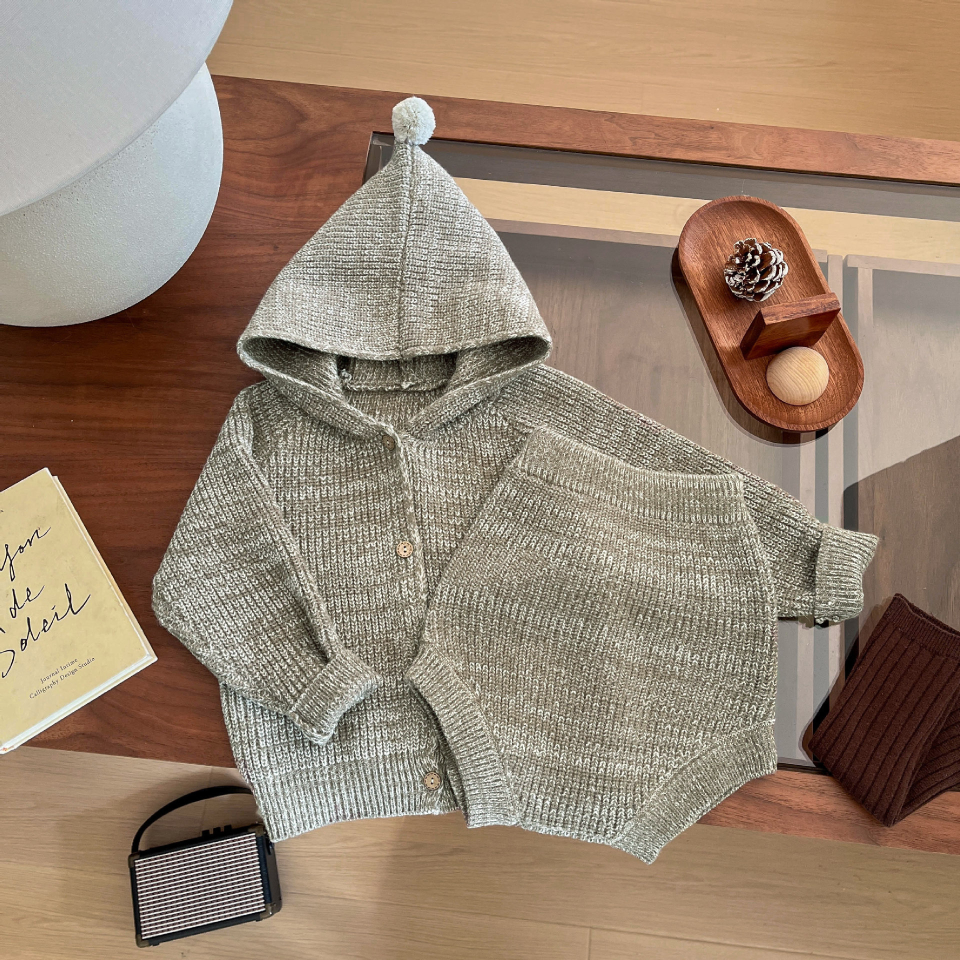한국 가을 겨울 착용 어린이 스웨터 세트 소년 소녀 아기 캐주얼 후드 니트 카디건 재킷 양모 반바지