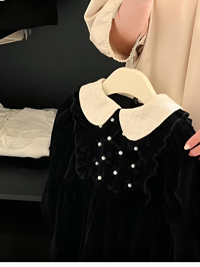 • 블랙 벨벳 베이비 칼라 드레스(벨벳 포함)