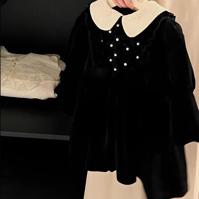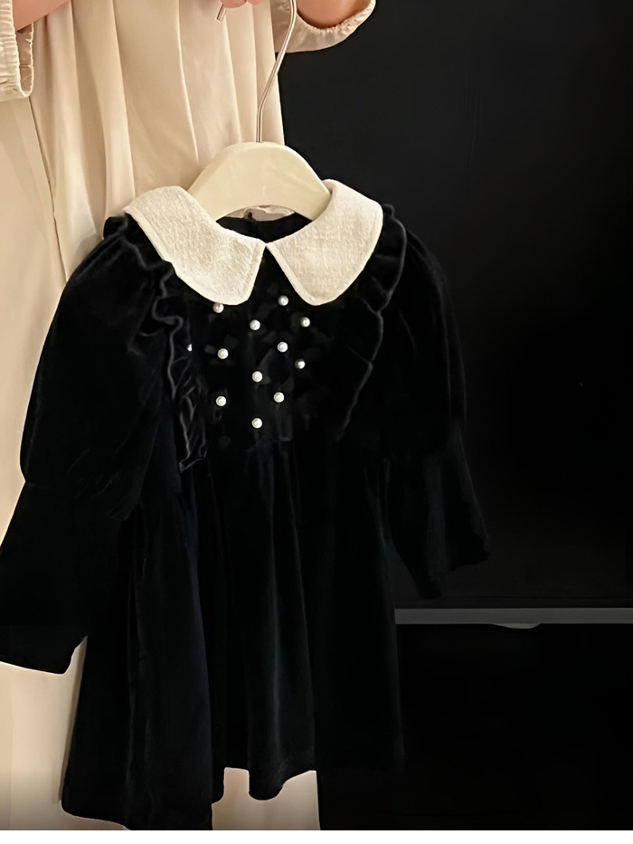 어린이 의류 소녀 벨벳 원피스 2024 봄 서양식 아기 소녀 세련된 기모 따뜻한 어린이 긴팔 치마스토어 가기