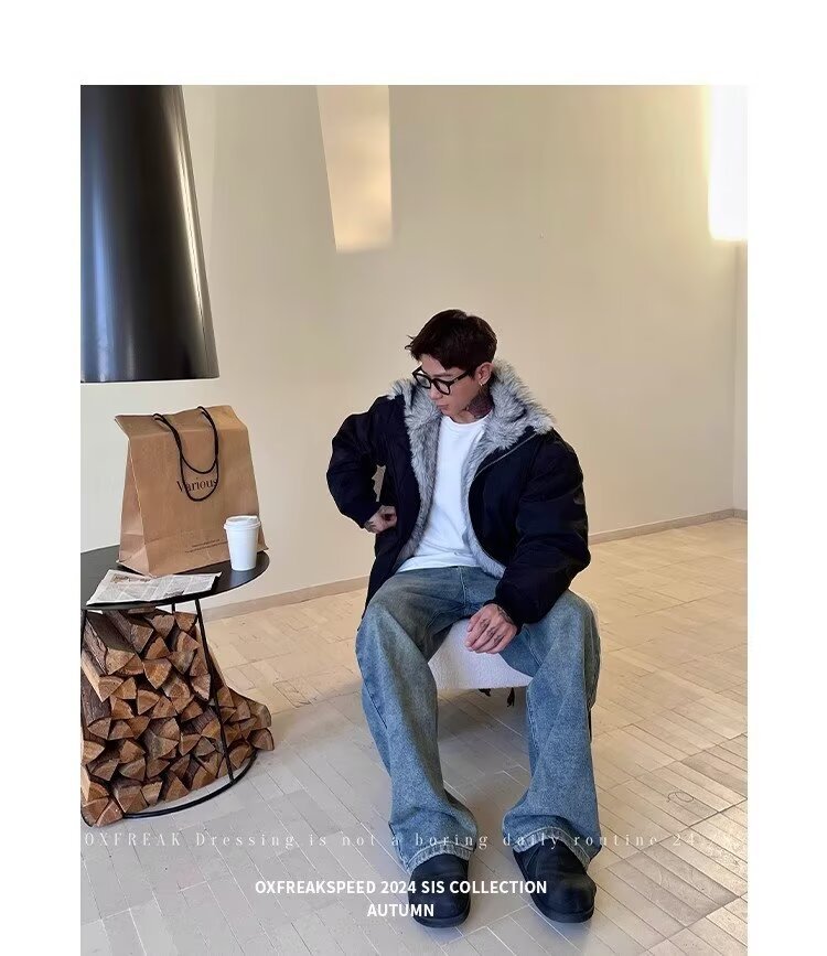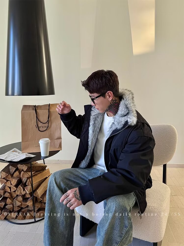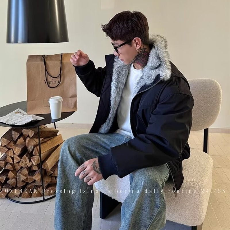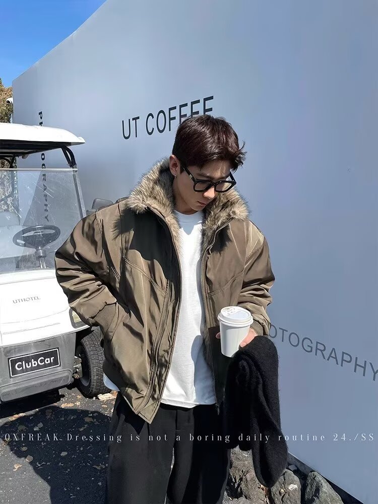 한국 스타일 자켓 코튼 패딩 코트 남자 겨울 하이 엔드 따뜻한 유지 두꺼운 칼라 레트로 캐주얼 플러시 재킷스토어 가기