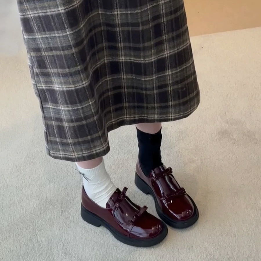 Cowhide Edition ~ 한 페달 조커 영국 스타일 검은 가죽 신발 여성의 2025 봄 새로운 두꺼운 힐 두꺼운 유일한 신발스토어 가기