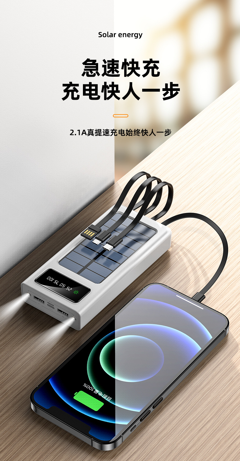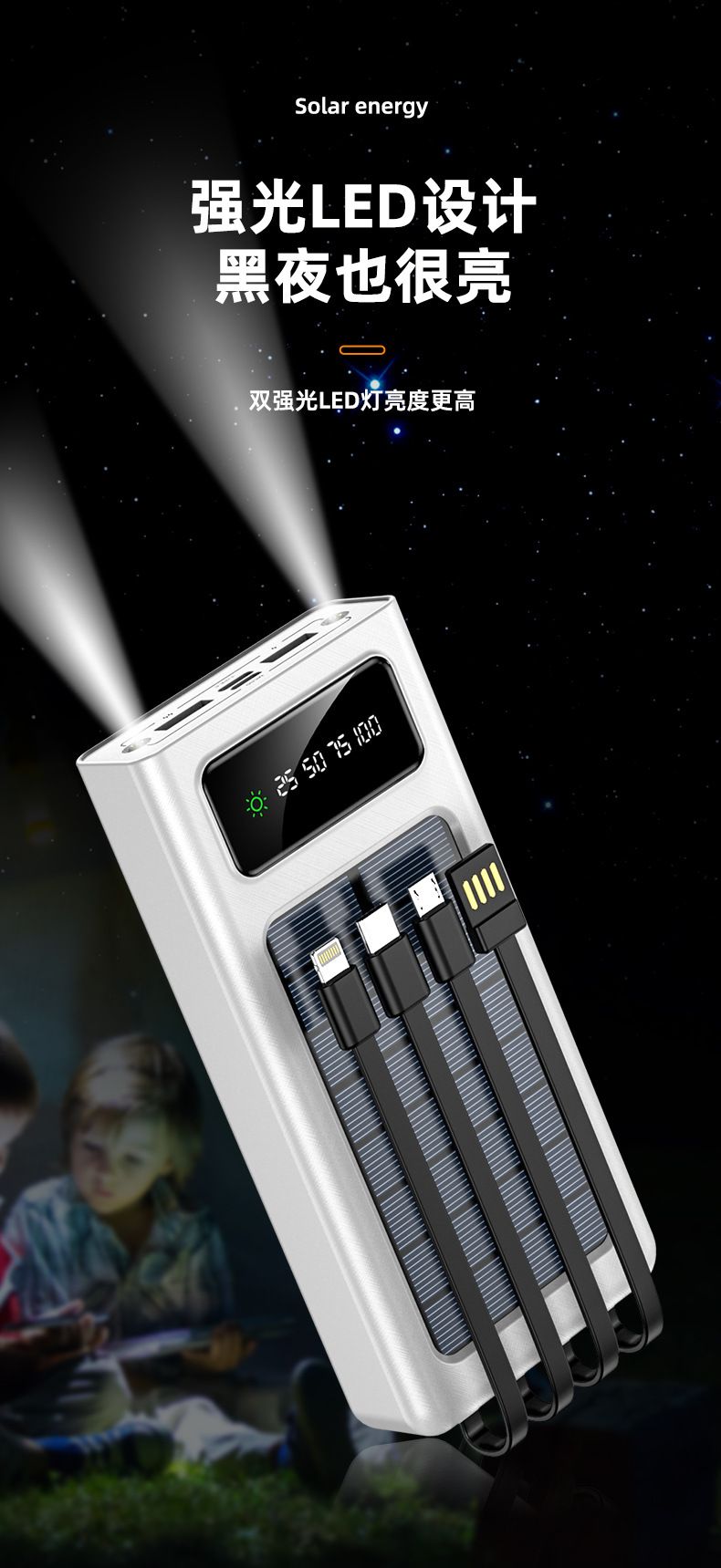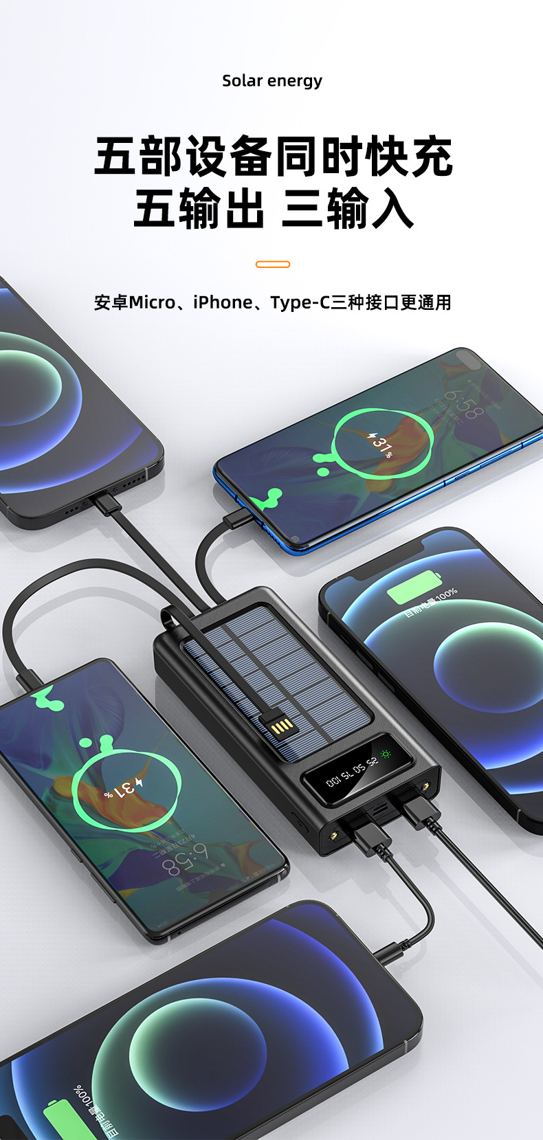 야외 국경 자체 포함 라인 태양 충전 보물 50000 mA 20000 대용량 빠른 충전 휴대용 모바일 전원 공급 장치